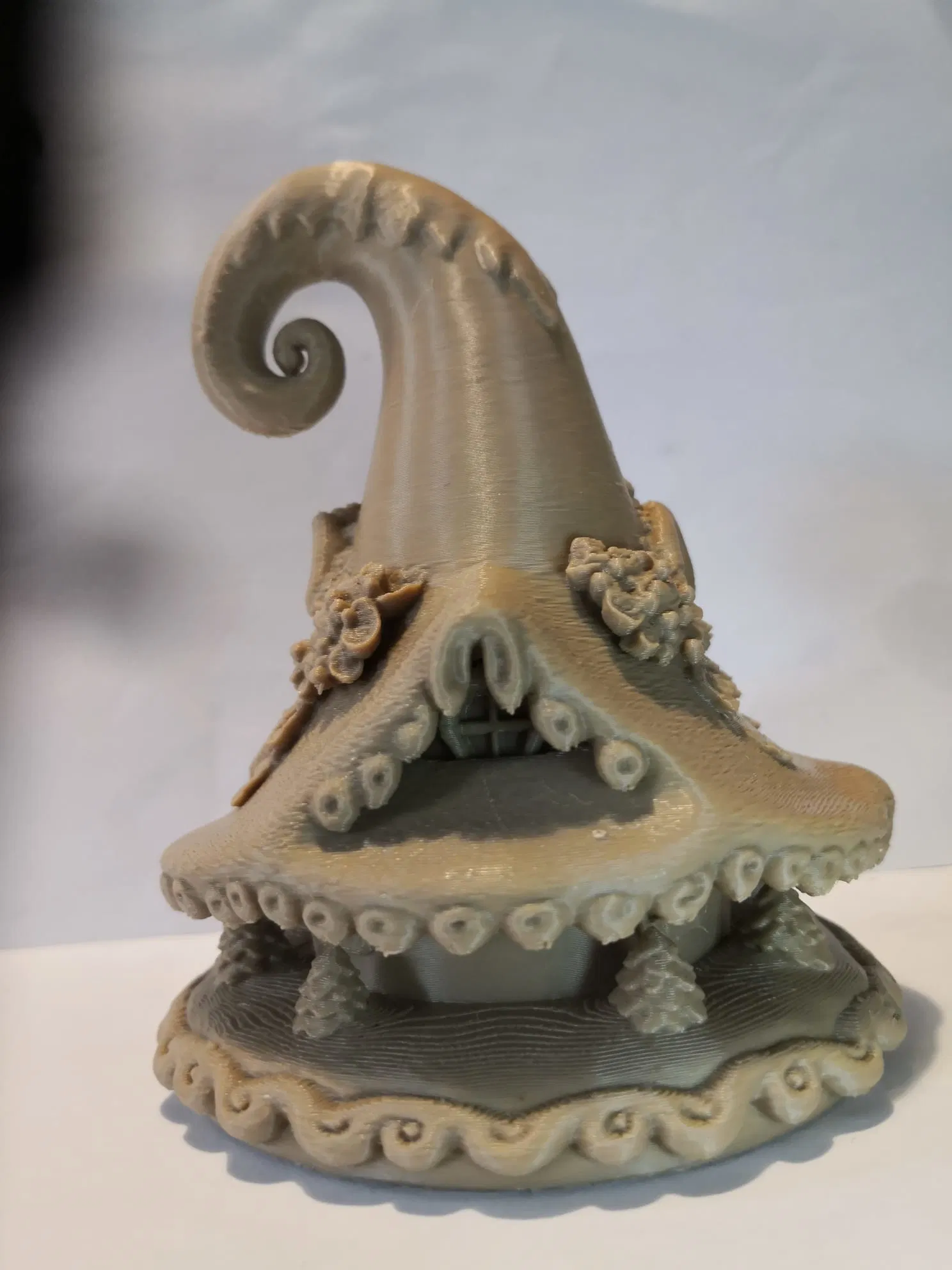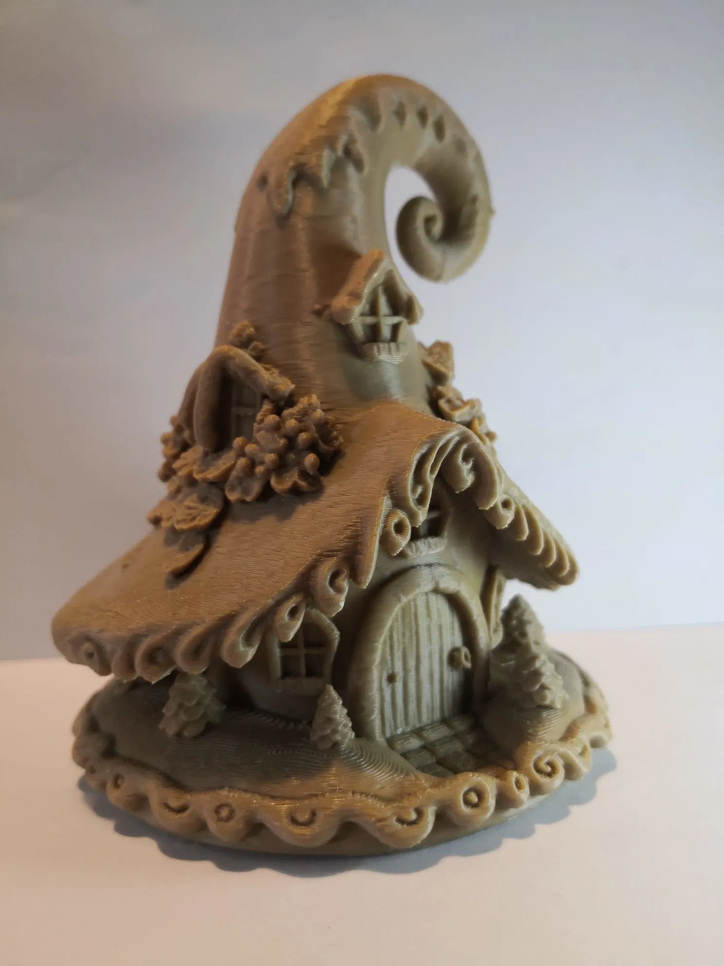 Một ngôi nhà tiên khác trong bộ sưu tập, lần này mang không khí Giáng Sinh tuyết phủ. Mô hình này cần hỗ trợ khi in, nên sử dụng chế độ tự động cây/hữu cơ để dễ dàng loại bỏ.