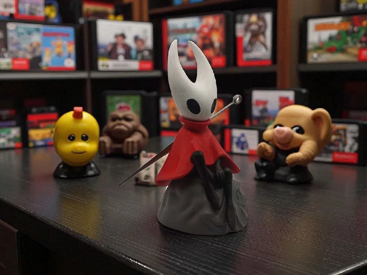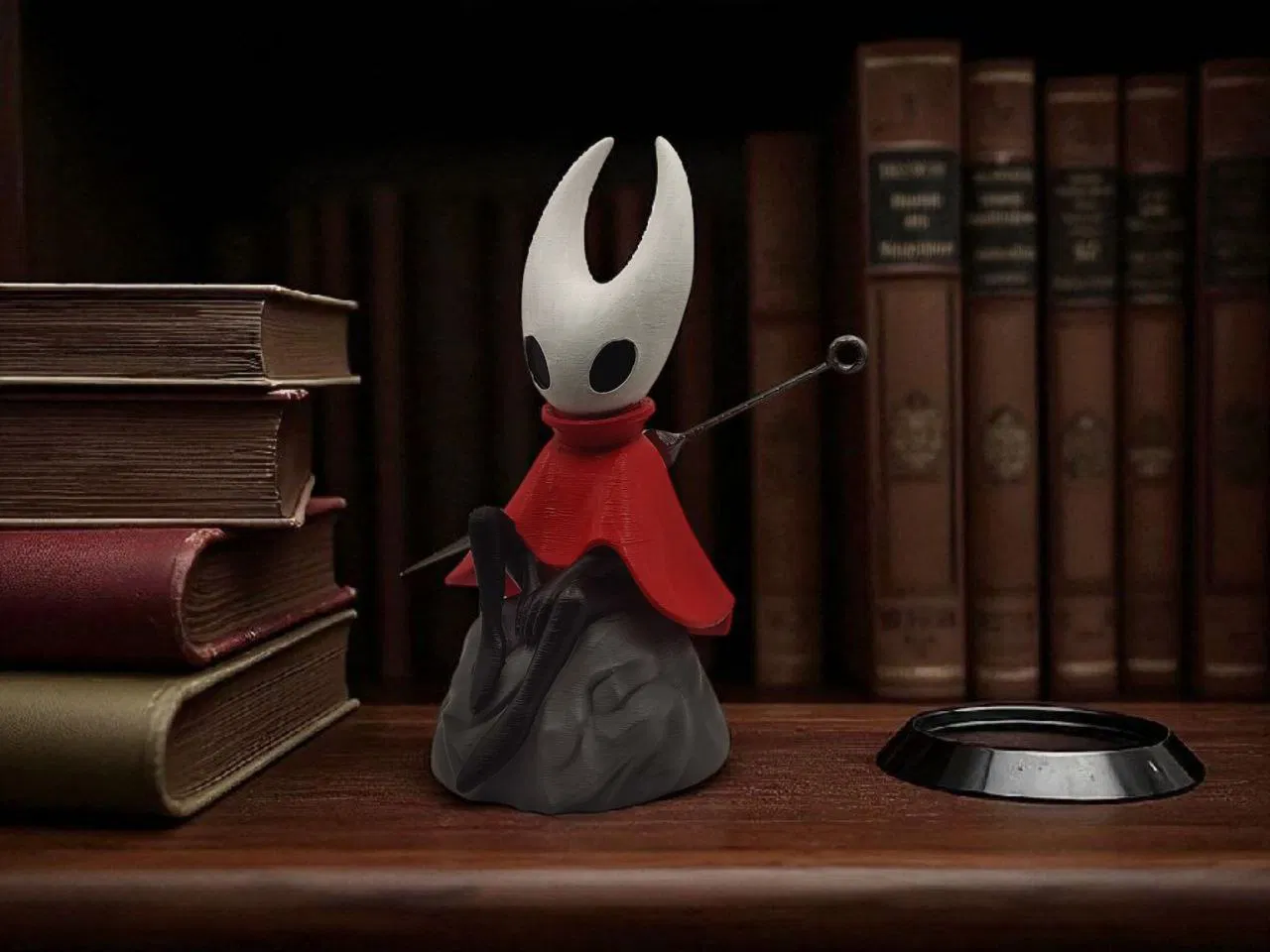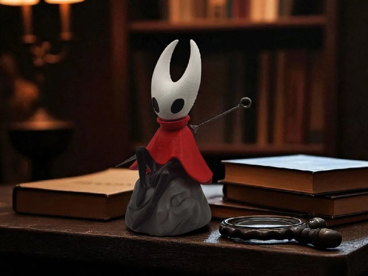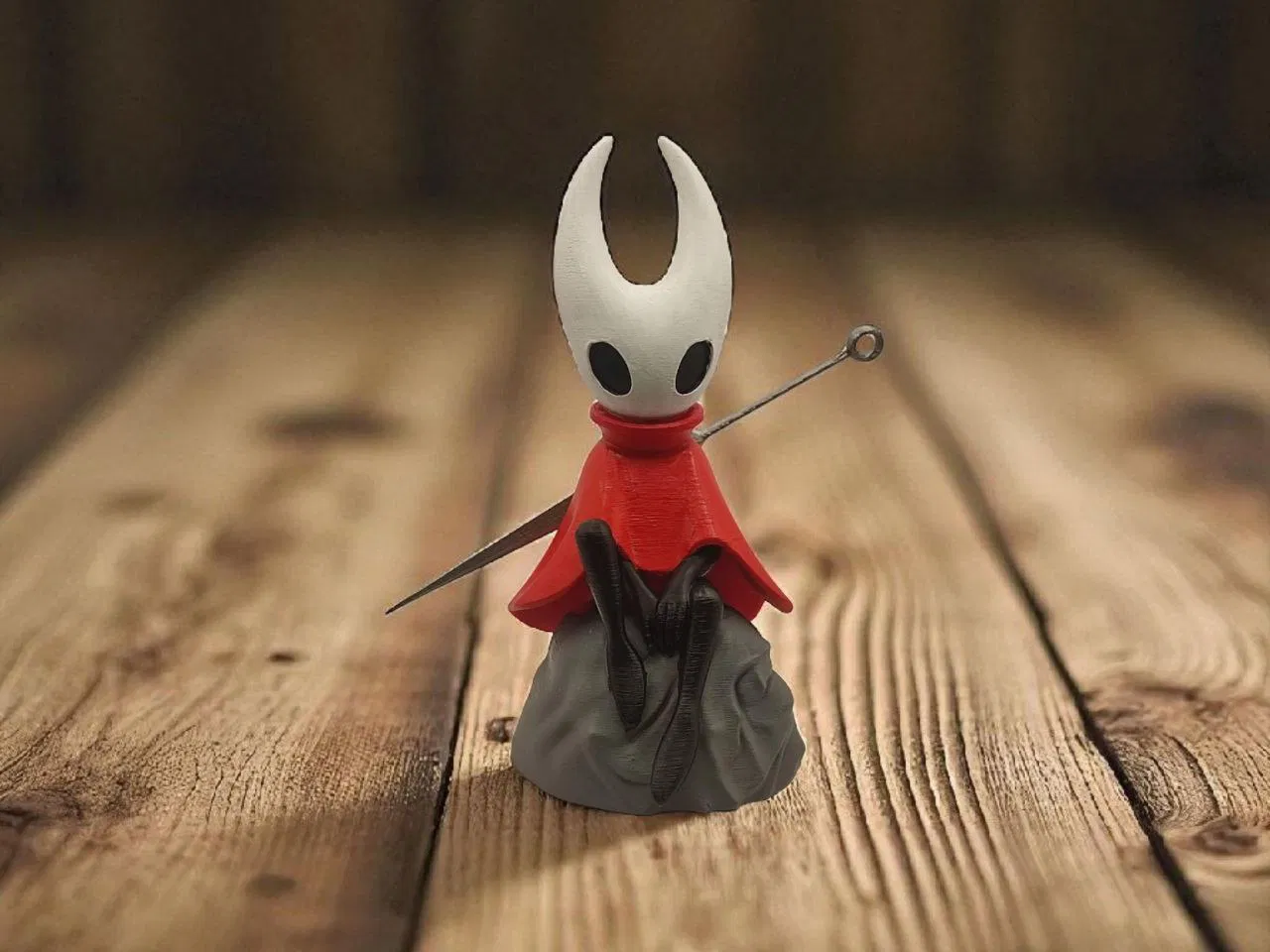 Đây là mô hình 3D có thể in được của Hornet từ Hollow Knight: Silksong. Nhân vật được thể hiện đang ngồi yên trên một tảng đá, mặc chiếc áo choàng đỏ đặc trưng và cầm vũ khí cây kim. Hoàn hảo để làm vật sưu tầm, trưng bày hoặc trang trí fan art. Dễ in và phù hợp để sơn nếu muốn.