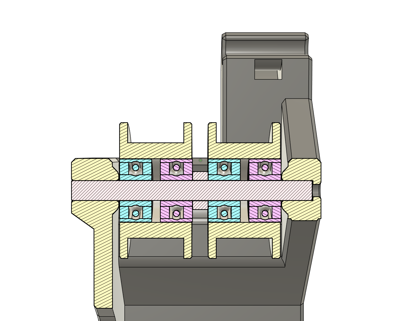 Giá đỡ động cơ XY Đã sửa đổi để chấp nhận chốt thép thay vì bu lông M3 để gắn ổ bi, mang lại độ chính xác nâng cao và giảm độ rơ.