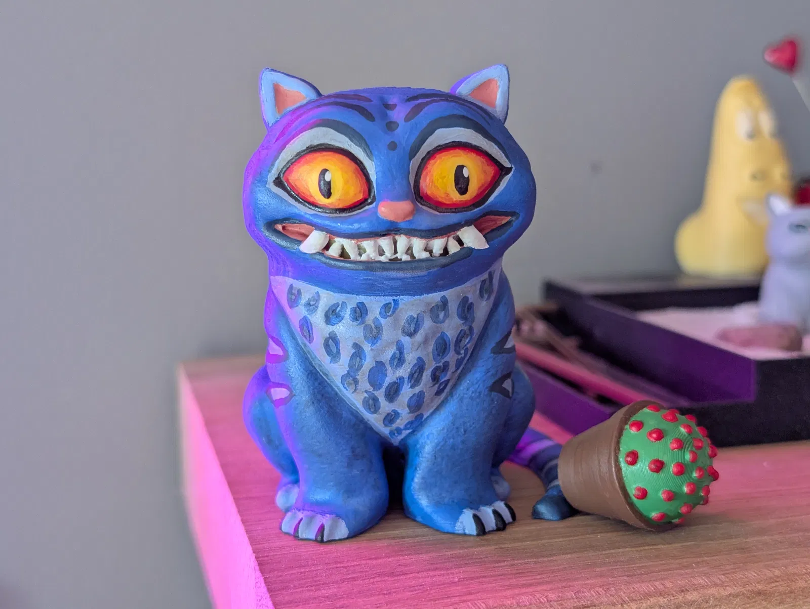 Mô hình Hổ Derpy, một nhân vật mèo thân thiện nhưng hơi đáng sợ với sức mạnh siêu nhiên từ KPop Demon Hunters. Dễ in, không cần hỗ trợ, kèm chậu hoa. Thích hợp cho người mới bắt đầu và cả những ai muốn thử nghiệm kỹ thuật sơn bóng mắt độc đáo.