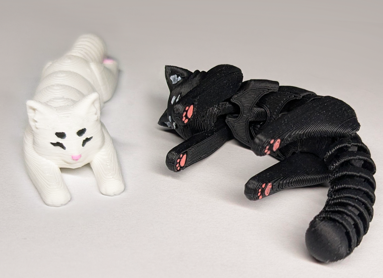 Một mô hình mèo siêu dễ thương, có khớp nối hoàn chỉnh, thiết kế cho in 3D. Có hai phiên bản (thường và mặt xù) với các gờ nhỏ trên mặt và chân giúp dễ dàng tô màu bằng bút lông. Lý tưởng cho việc làm đồ chơi hoặc đồ trang trí độc đáo.