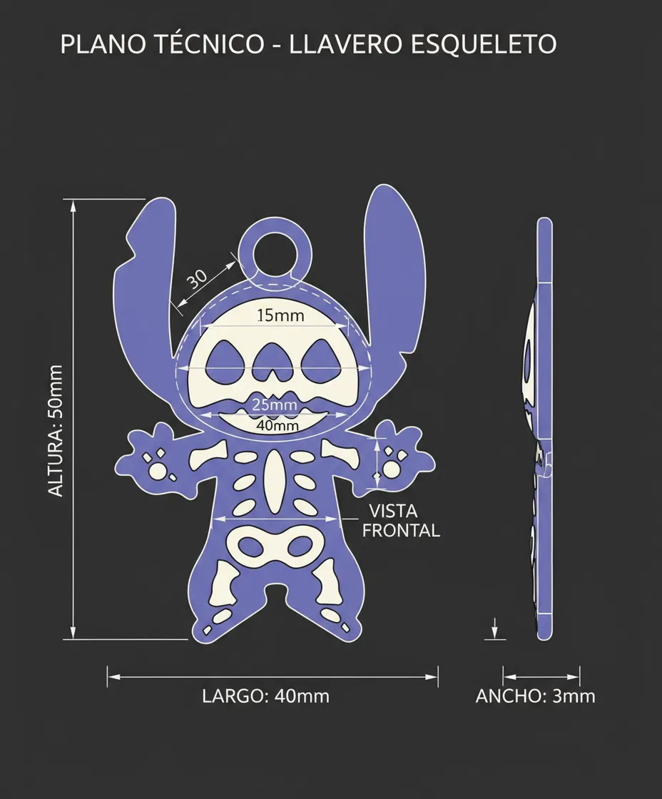 Móc khóa Halloween Stitch với thiết kế bộ xương độc đáo, vừa vui nhộn vừa rùng rợn. Hoàn hảo để trang trí chìa khóa mùa lễ hội, làm quà tặng hoặc vật trang trí nhỏ. Sử dụng PLA hoặc ABS để in. Không cần lắp ráp phức tạp.
