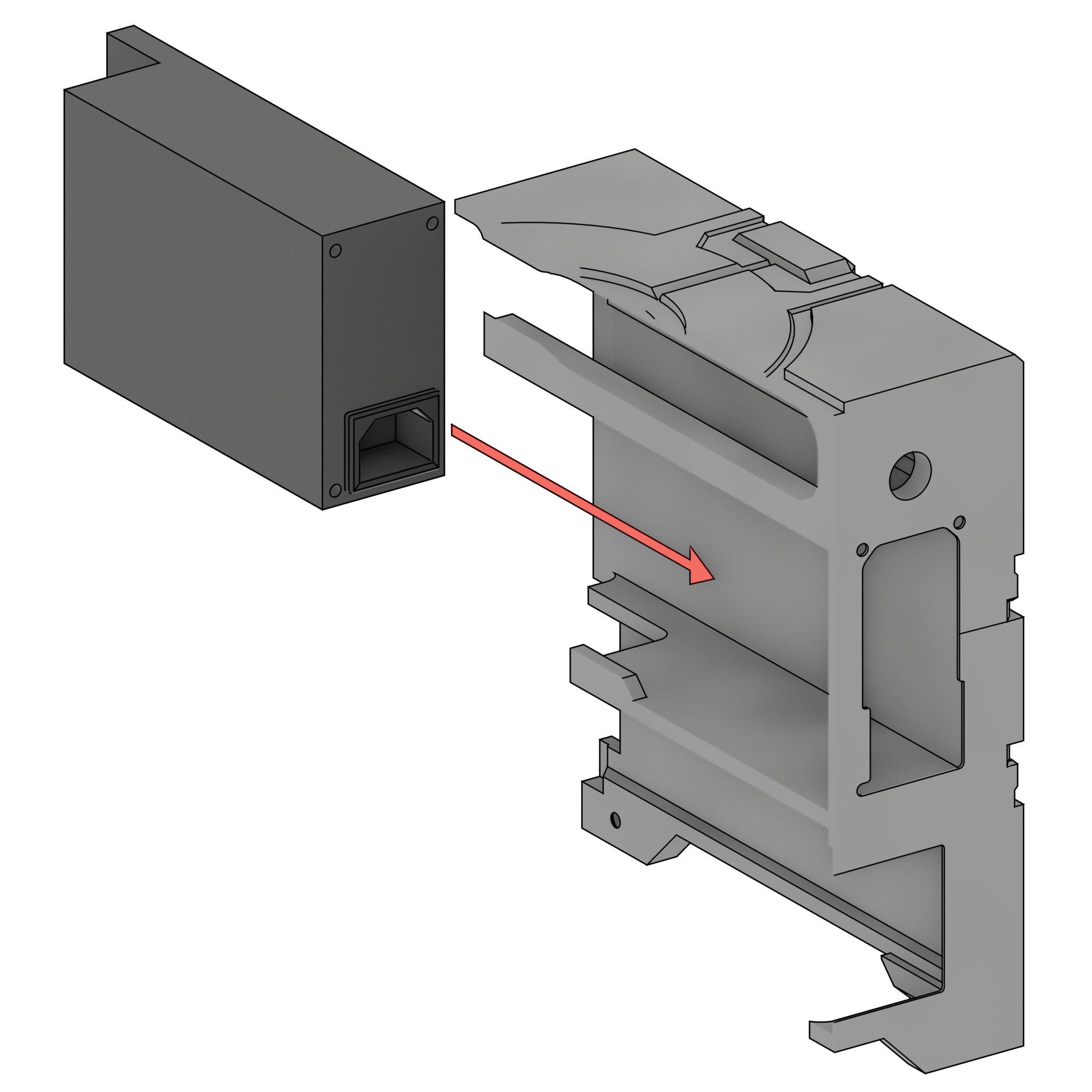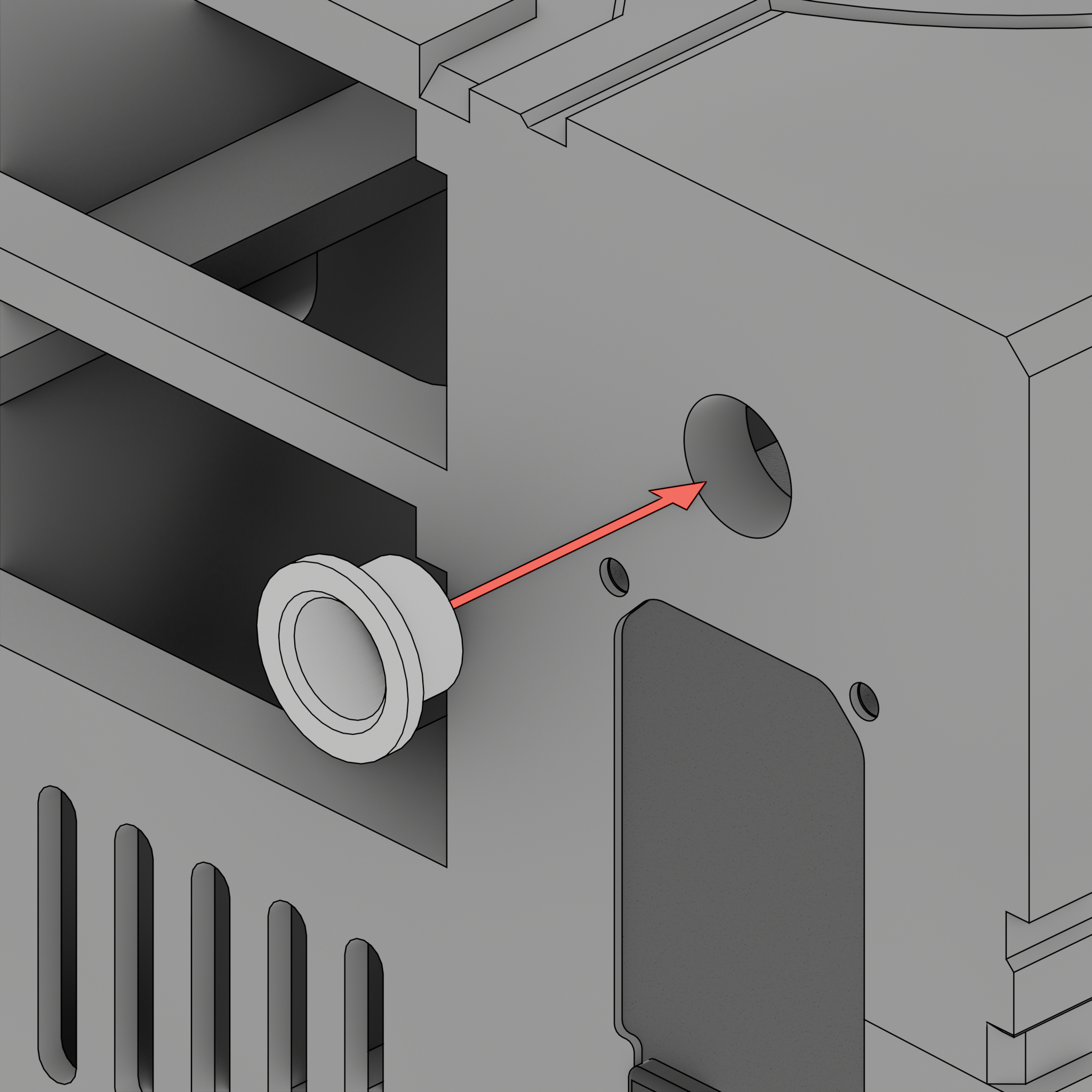 - Lắp bộ chuyển đổi nút bấm vào mặt sau của vỏ máy. Nút bấm có thể được điều chỉnh để phù hợp với kích thước cần thiết.