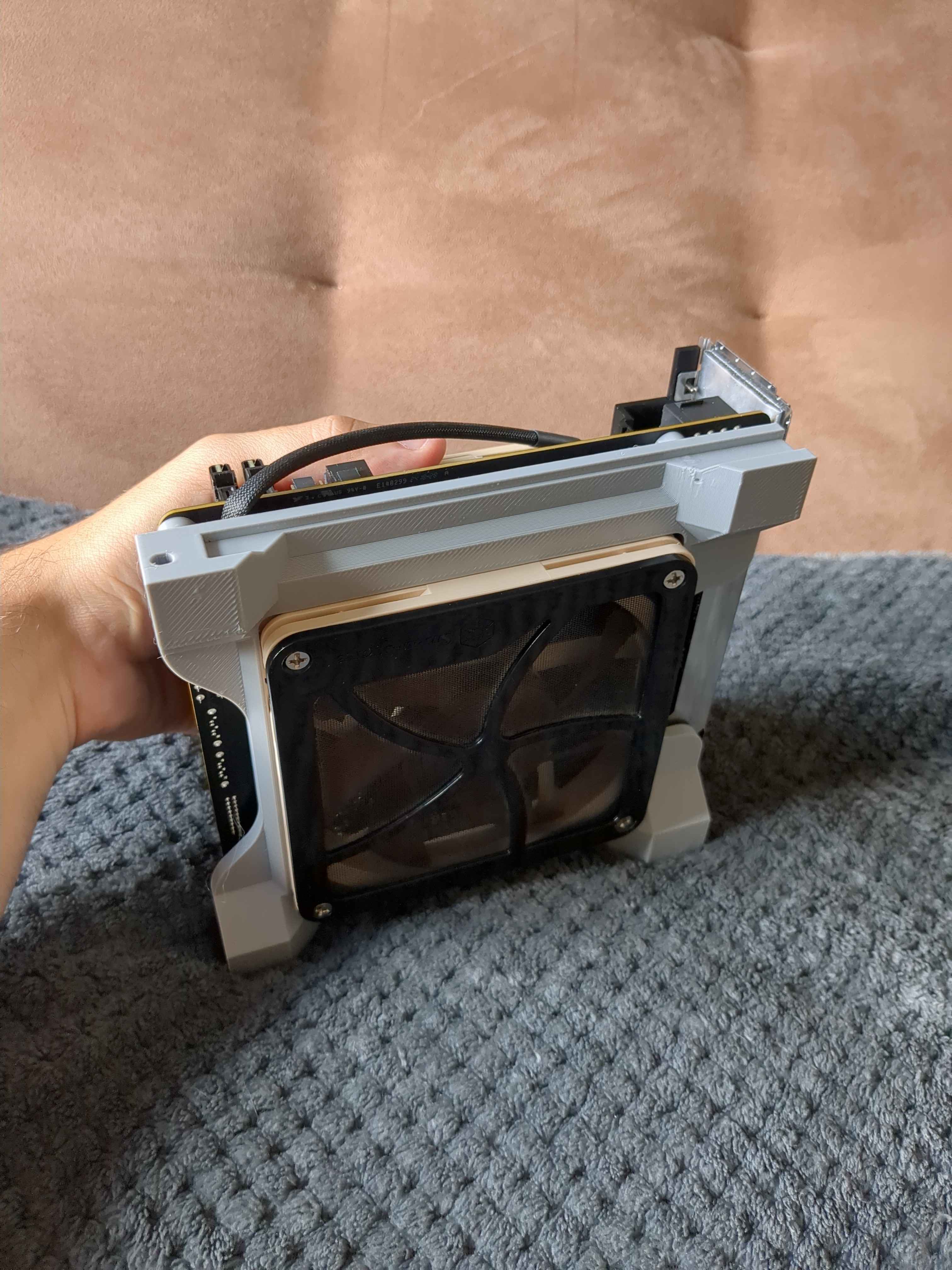 - Khay bo mạch chủ độc lập: Khay riêng cho bo mạch chủ Mini-ITX của bạn với hỗ trợ quạt 120mm. Khay này có thể tháo rời, cho phép tạo ra các phiên bản thay thế cho các kích thước hoặc cấu hình linh kiện khác nhau.