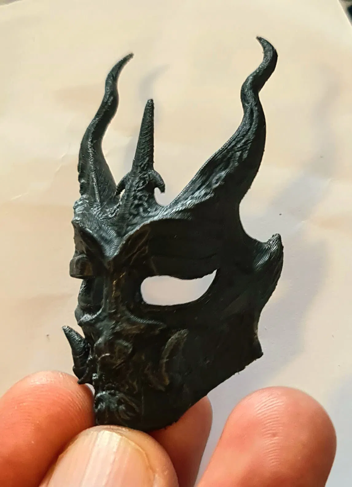 Đây là phiên bản Weaver’s Mask lấy cảm hứng từ truyện Shadow Slave của tui. Tui không tìm được cái mẫu nào giống y chang nên quyết định tự làm luôn. Cái này chỉ in cỡ nhỏ thôi nha, tại tui hết nhựa in với không có thời gian làm cái bự.