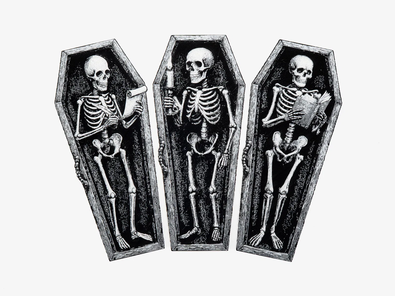 Mấy bộ xương này sẽ giữ chỗ trang sách cho bạn từ trong quan tài của tụi nó. Không cần AMS/MMU, chỉ cần đổi màu 2 lần. Cài đặt in chi tiết kèm theo, có cả file 3MF cho AMS. Lưu ý cách in thủ công và các mẹo để có bản in hoàn hảo nhất.
