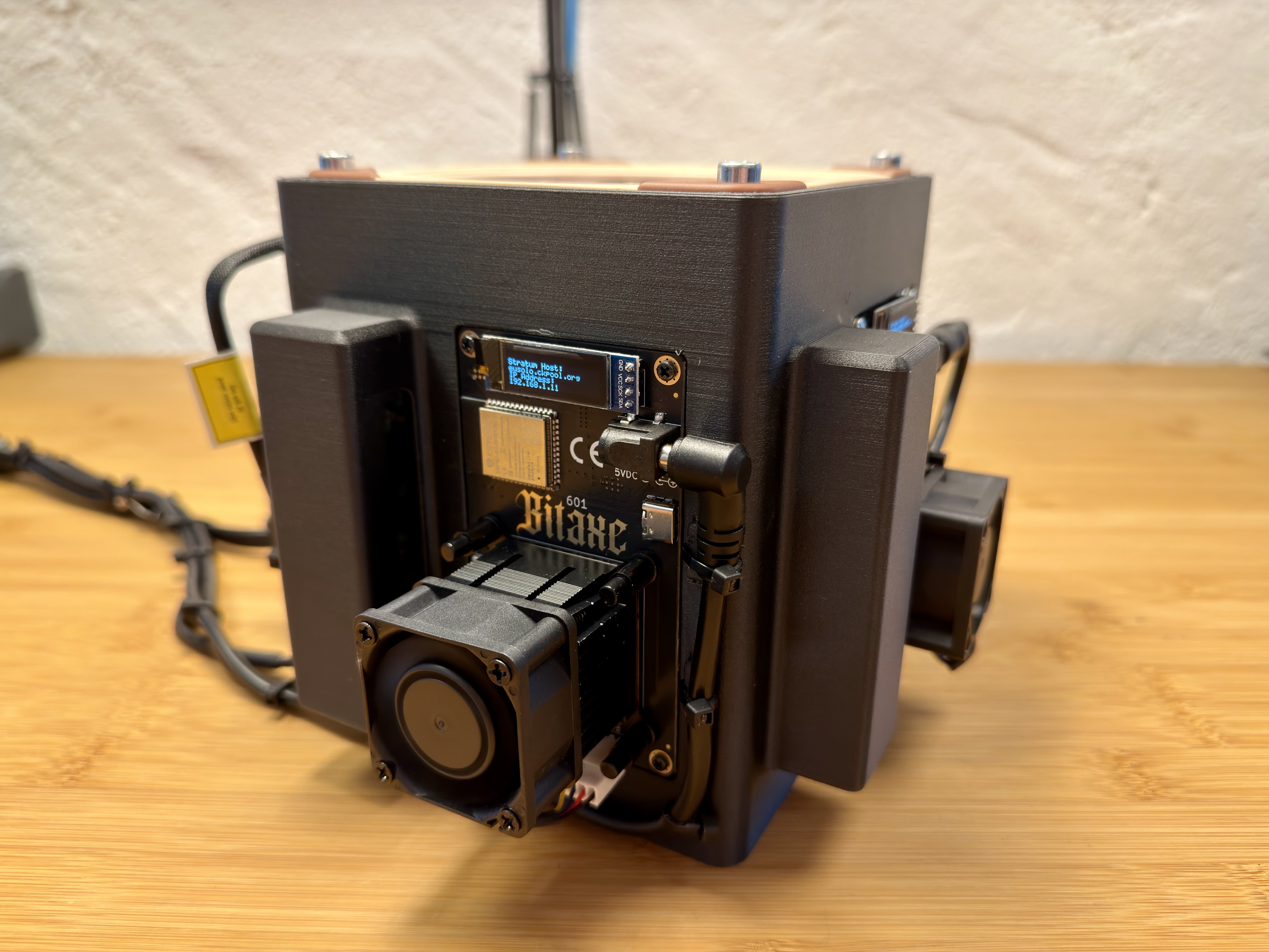 sau khi tìm giải pháp cho mớ dây nhợ lộn xộn của máy đào BitAxe của mình, mình đã nghĩ ra cái tháp làm mát nhỏ này cho 4 máy.