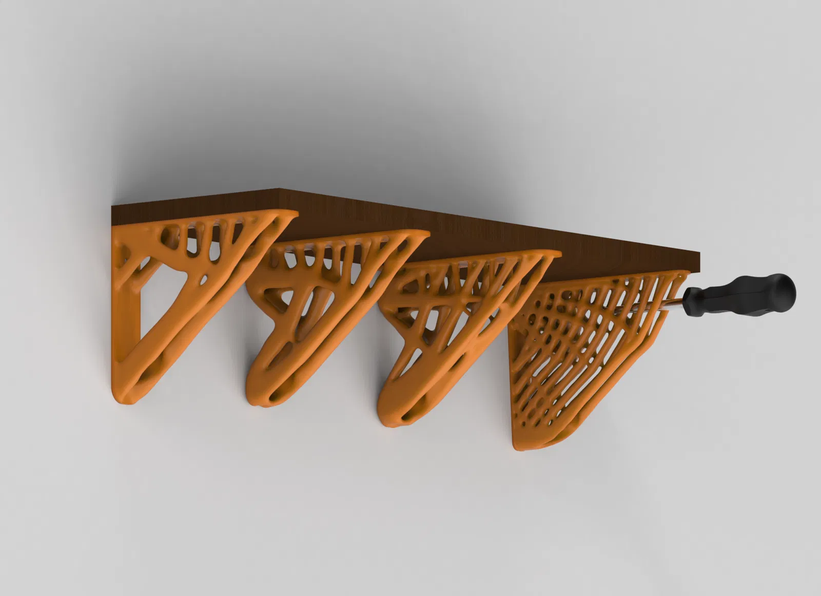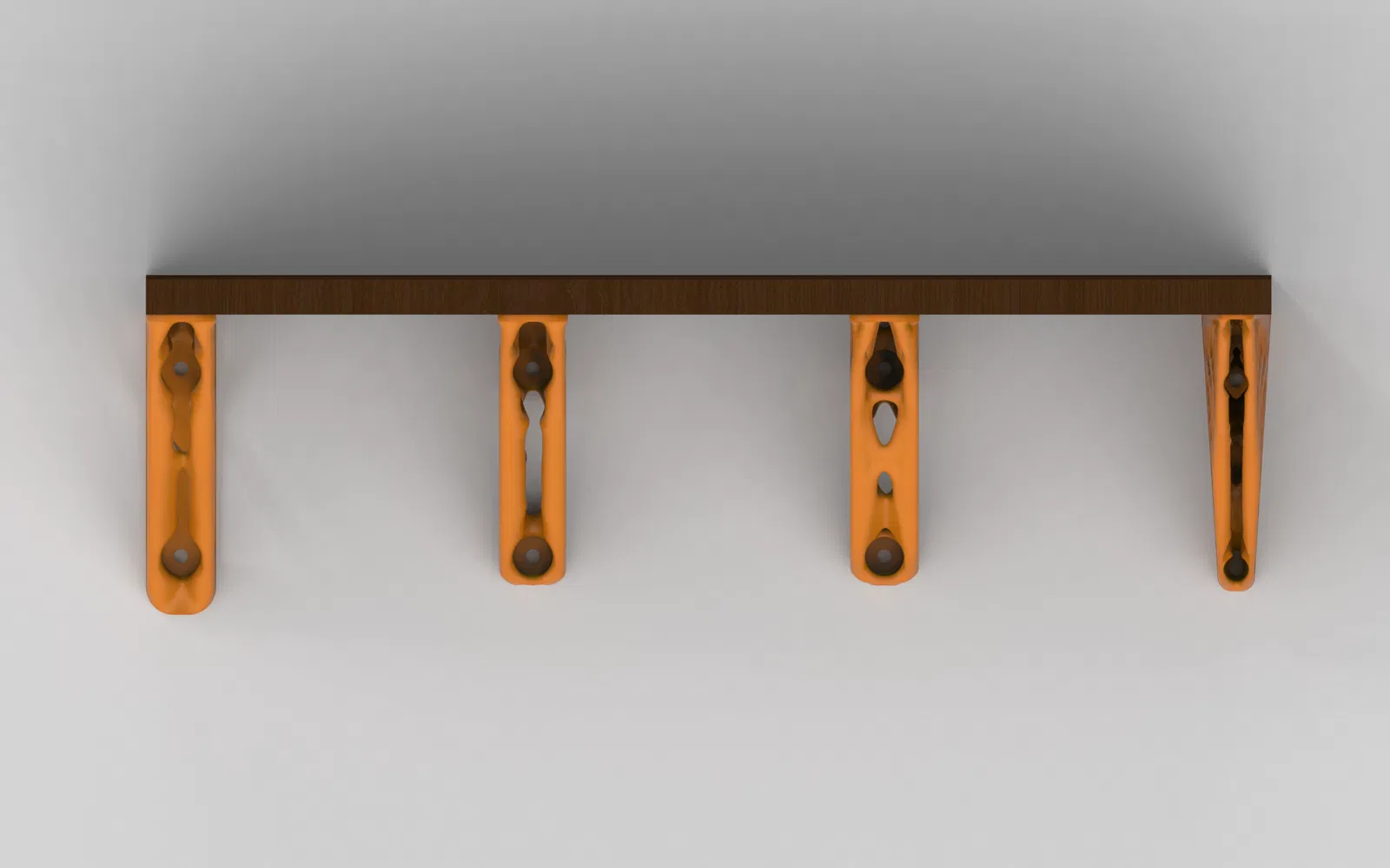 Giá đỡ kệ gắn tường siêu cứng cáp, thiết kế theo thuật toán tối ưu cấu trúc (generative design). Có 4 mẫu mã khác nhau cho bạn lựa chọn, dễ dàng tùy chỉnh kích thước theo nhu cầu sử dụng.