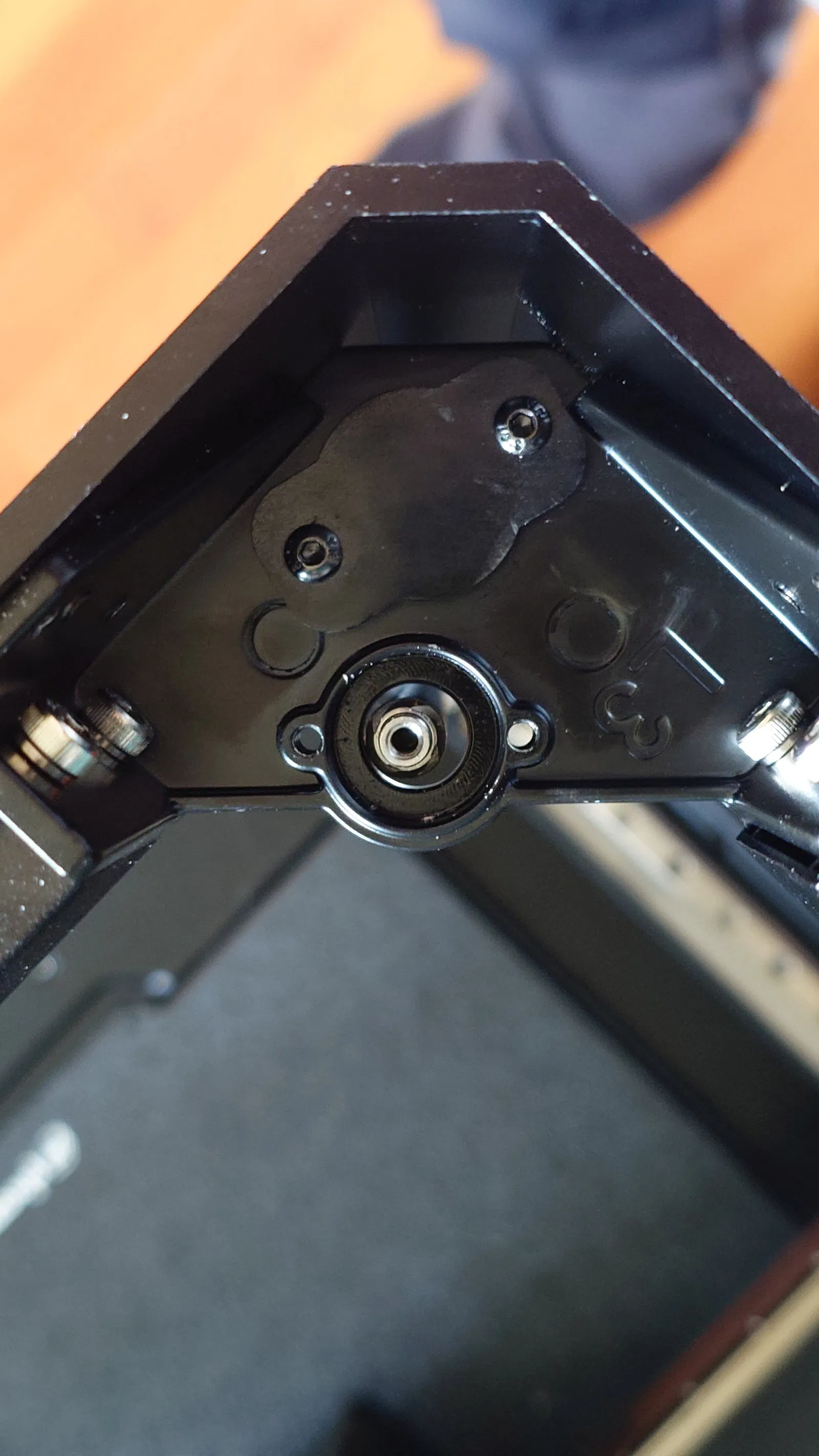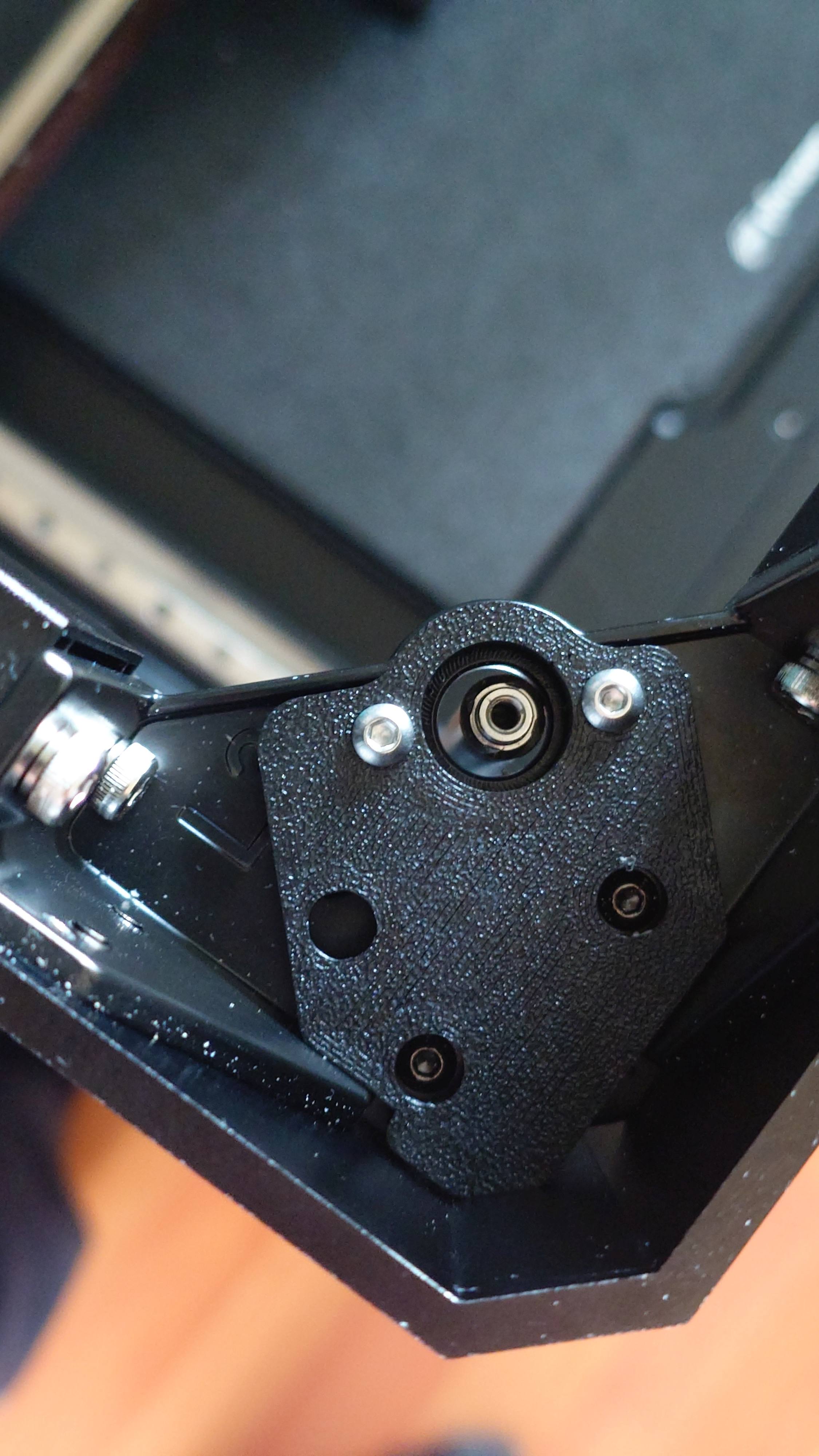 Bây giờ, lắp phần dưới của nắp chụp Z vào giá đỡ góc. Nó nên khớp vào lỗ bạc đạn rất tốt. Cố định nửa dưới bằng 2 vít đã dùng để cố định bạc đạn.