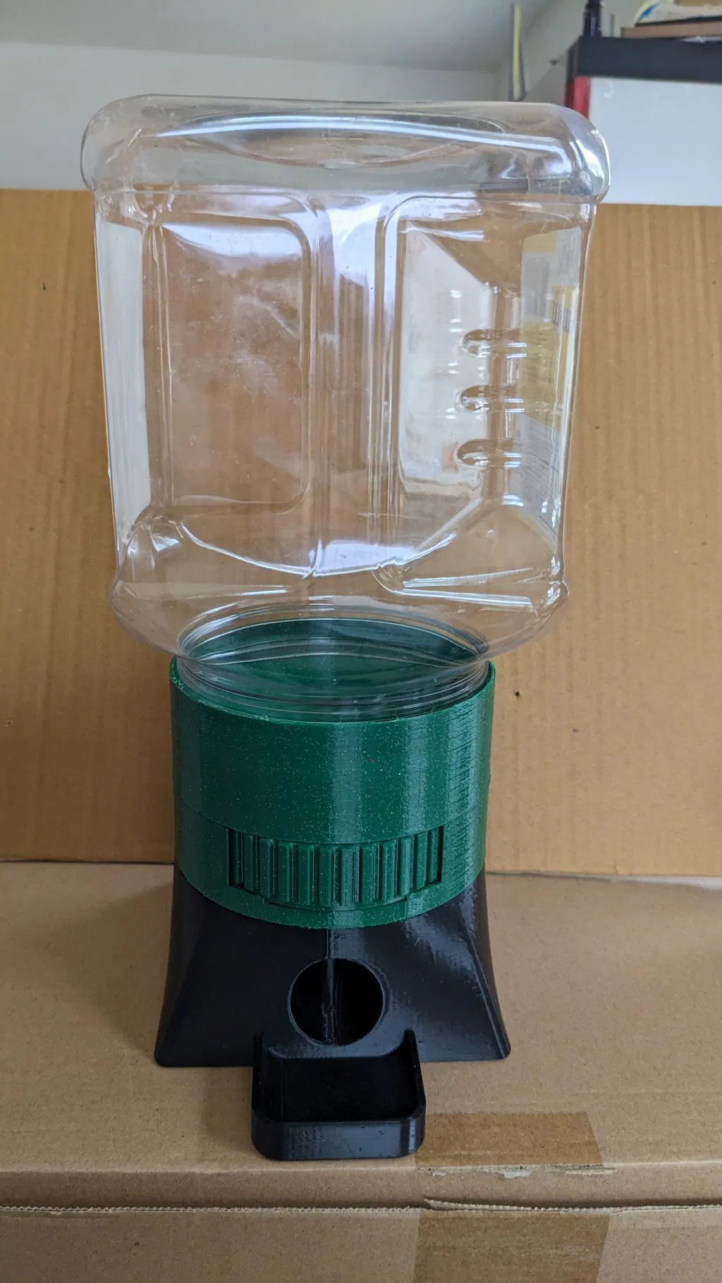 Tui làm cái này để tránh lấy một nắm kẹo đậu phộng M&M. Thiết kế ban đầu được làm để vặn trực tiếp vào hộp kẹo mới mà không cần chuyển kẹo qua hộp đựng riêng.