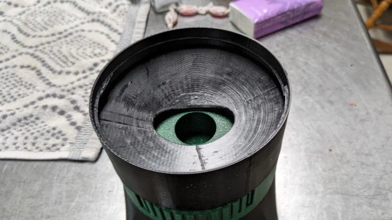 Các bộ phận được lắp ráp tuần tự từ trên xuống dưới. Bộ phận chọn được gắn vào đế chọn bằng một vít mũ chìm M3 25mm. Vít không nên siết quá chặt vì sẽ cản trở việc xoay bộ phận chọn. Bộ phận chọn + đế đã lắp ráp được gắn vào nắp vặn bằng vít mũ chìm M3 10mm. Có 5 lỗ, nhưng dùng 3 vít là đủ. Phần đáy được gắn vào mặt dưới của đế chọn bằng 5 vít mũ chìm M3 12mm, một lần nữa 3 vít có lẽ là đủ.