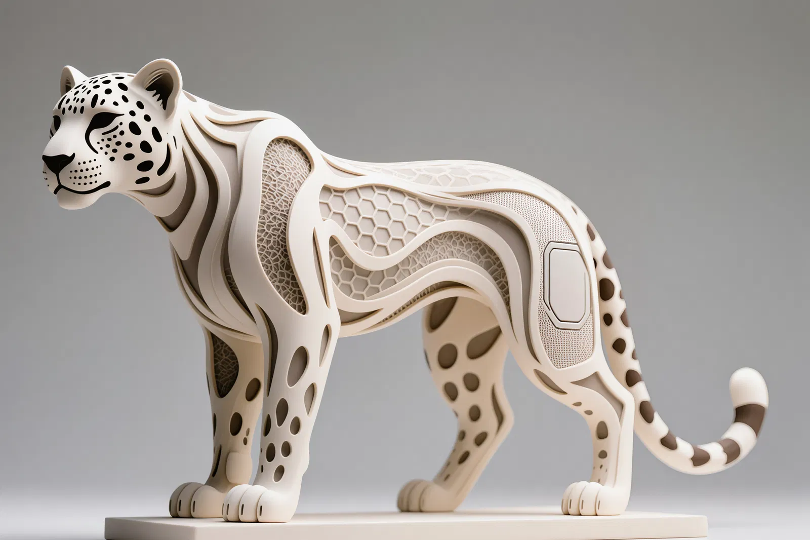 Khám phá Tượng Gepard Hexa, một tác phẩm điêu khắc hình học độc đáo lấy cảm hứng từ loài báo săn. Thích hợp để trang trí hoặc làm quà tặng, mô hình này là sự kết hợp tuyệt vời giữa nghệ thuật và hình học.