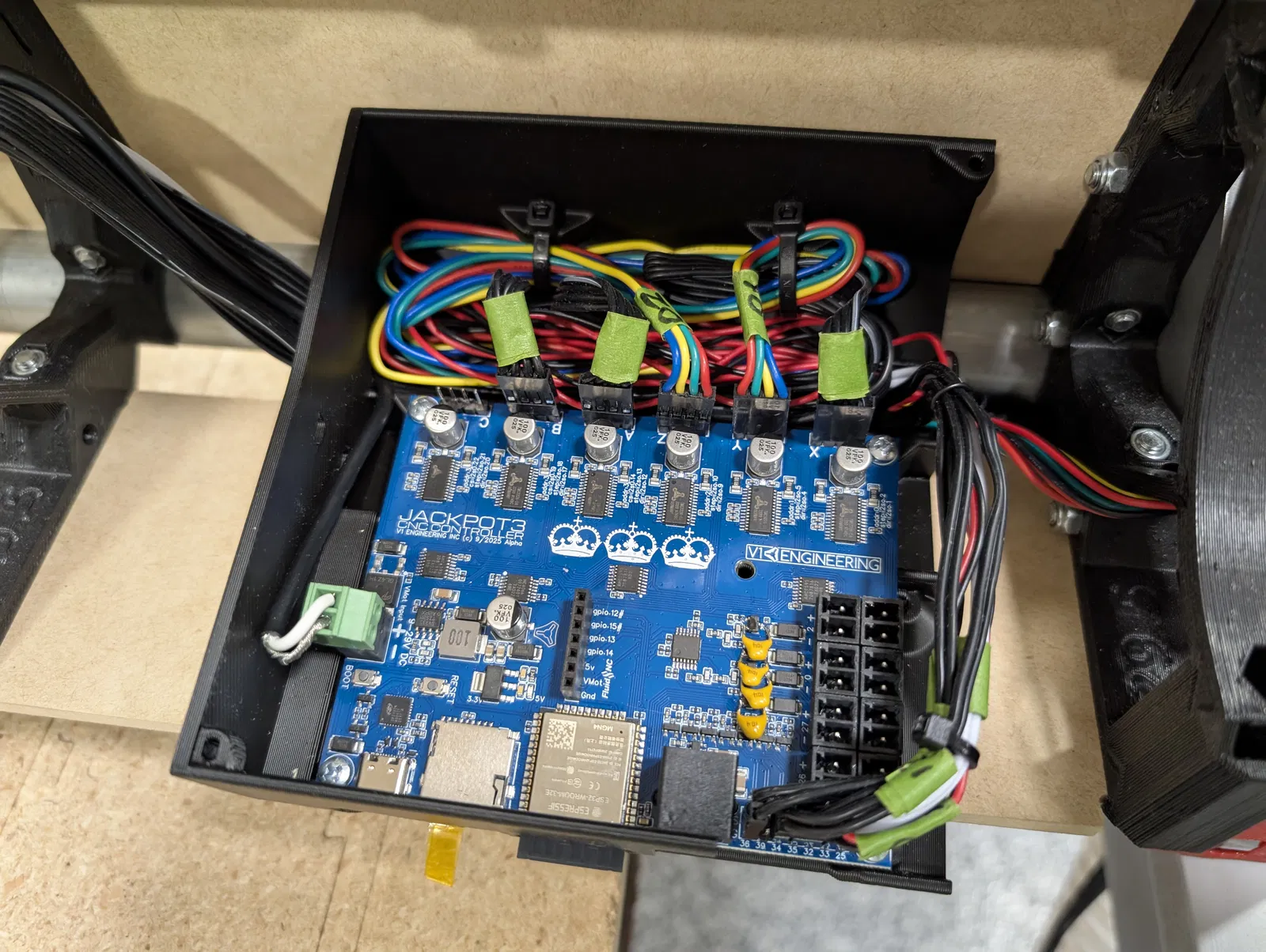 Hộp JackPot3 này rất tuyệt để sắp xếp dây cáp cho LowRider 4 CNC và các máy khác. Có hệ thống làm mát tích hợp, kèm tùy chọn quạt cho khí hậu nóng. Sử dụng 6 vít M3x10mm.