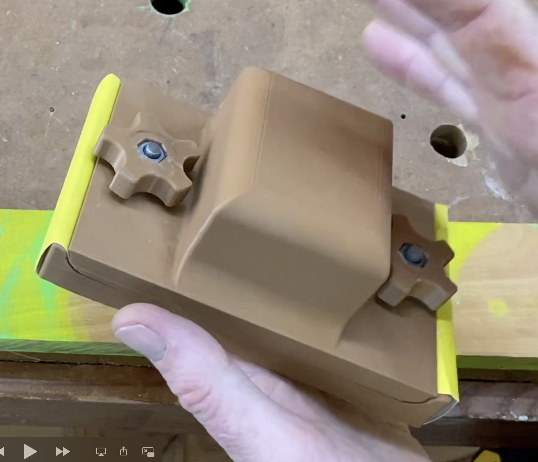 Tôi khuyên bạn nên in phần đế ở giữa bàn in trước để tránh bị cong vênh. Sau đó, in phần nắp và hai núm vặn tay làm bản in thứ hai.