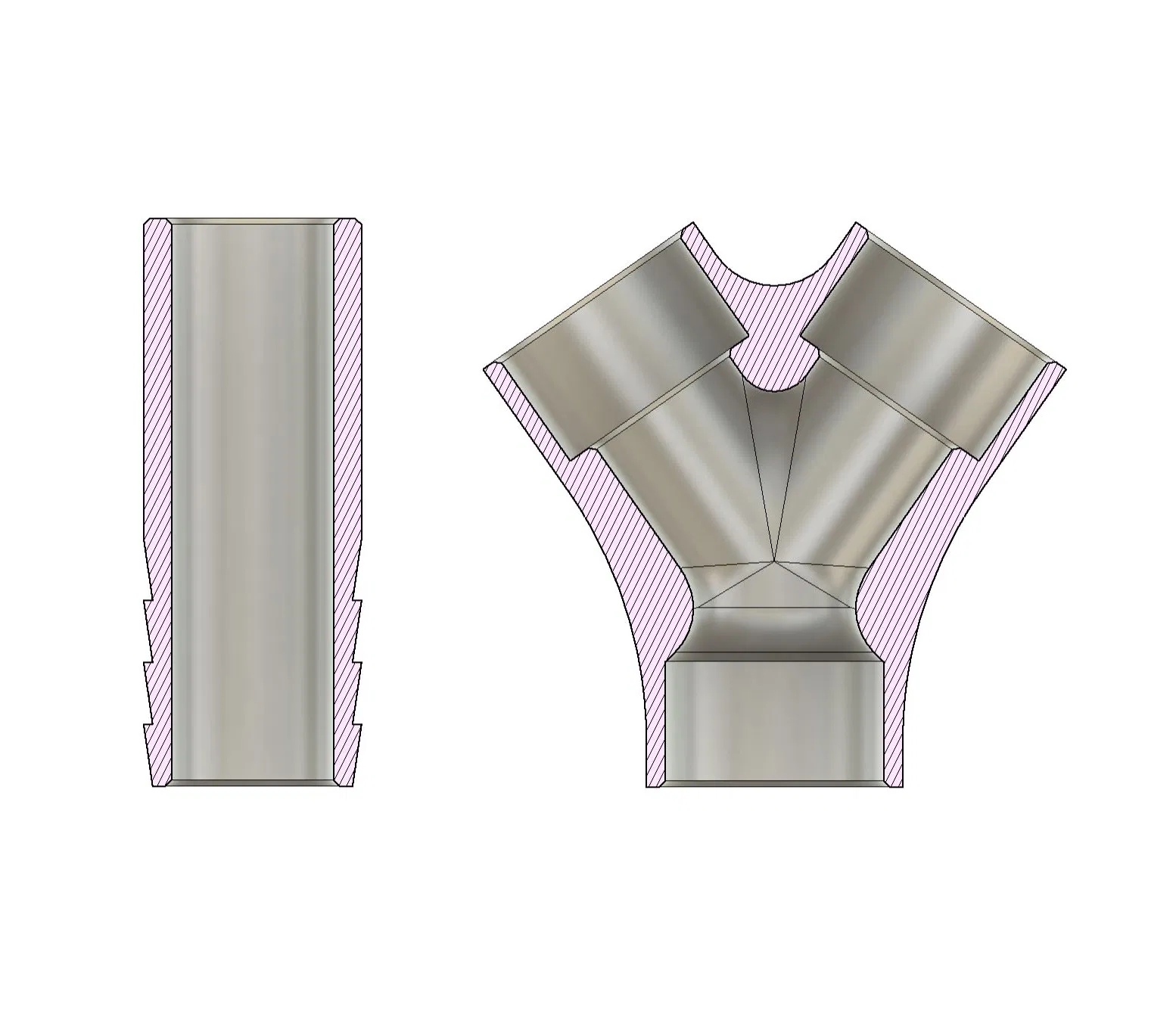 Dùng để nối 3 đoạn ống lại với nhau (đường kính trong 1/2"). Không khuyến khích cho áp suất cao hoặc nhiên liệu. Lắp ráp bằng keo E6000, keo siêu dính, epoxy. Cần làm phẳng chỗ nối để đảm bảo độ kín. Nên in theo hướng ảnh chụp màn hình.