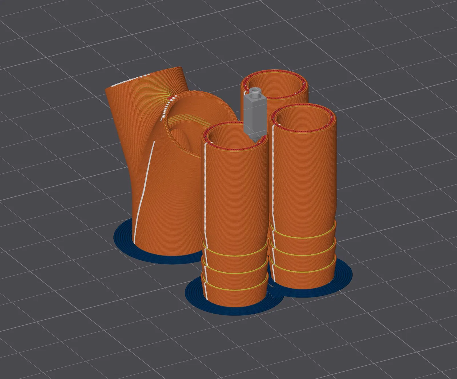 Không khuyến khích dùng cho các ứng dụng áp suất cao hoặc nhiên liệu. Chỉ dùng cho ống/dây có đường kính trong 1/2". Lắp ráp các bộ phận in bằng E6000, keo siêu dính, epoxy 2 thành phần hoặc chất kết dính tương tự. Các chi tiết in có thể cần được làm phẳng chỗ nối bằng dao hoặc dụng cụ tương tự để đảm bảo độ kín khi kết nối với nhau, cũng như với ống. Thiết kế để in theo hướng được hiển thị trong ảnh chụp màn hình và sử dụng cài đặt in sau. Thiết kế có khoảng trống để cố định ống bằng kẹp ống hoặc dây rút, nếu muốn.