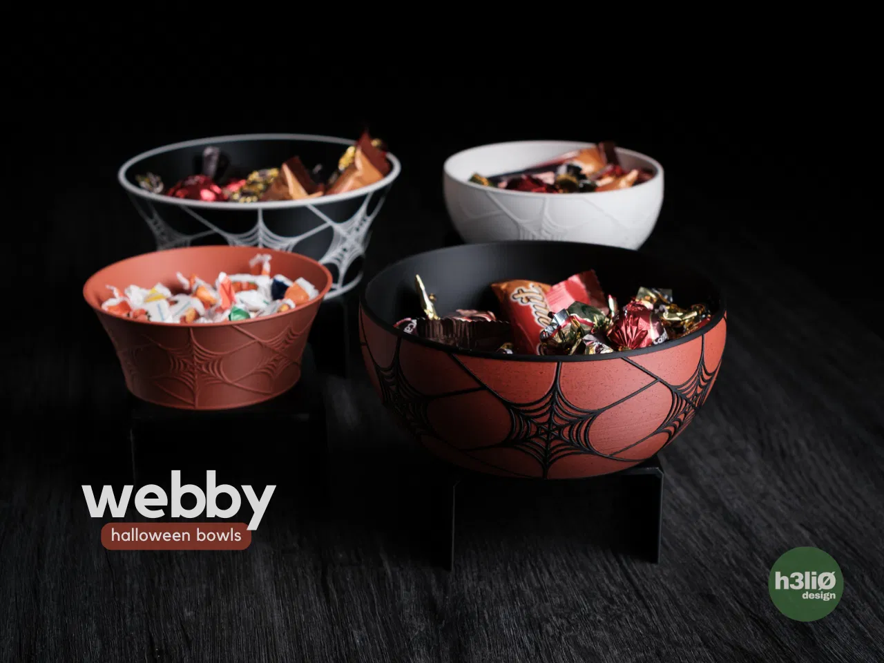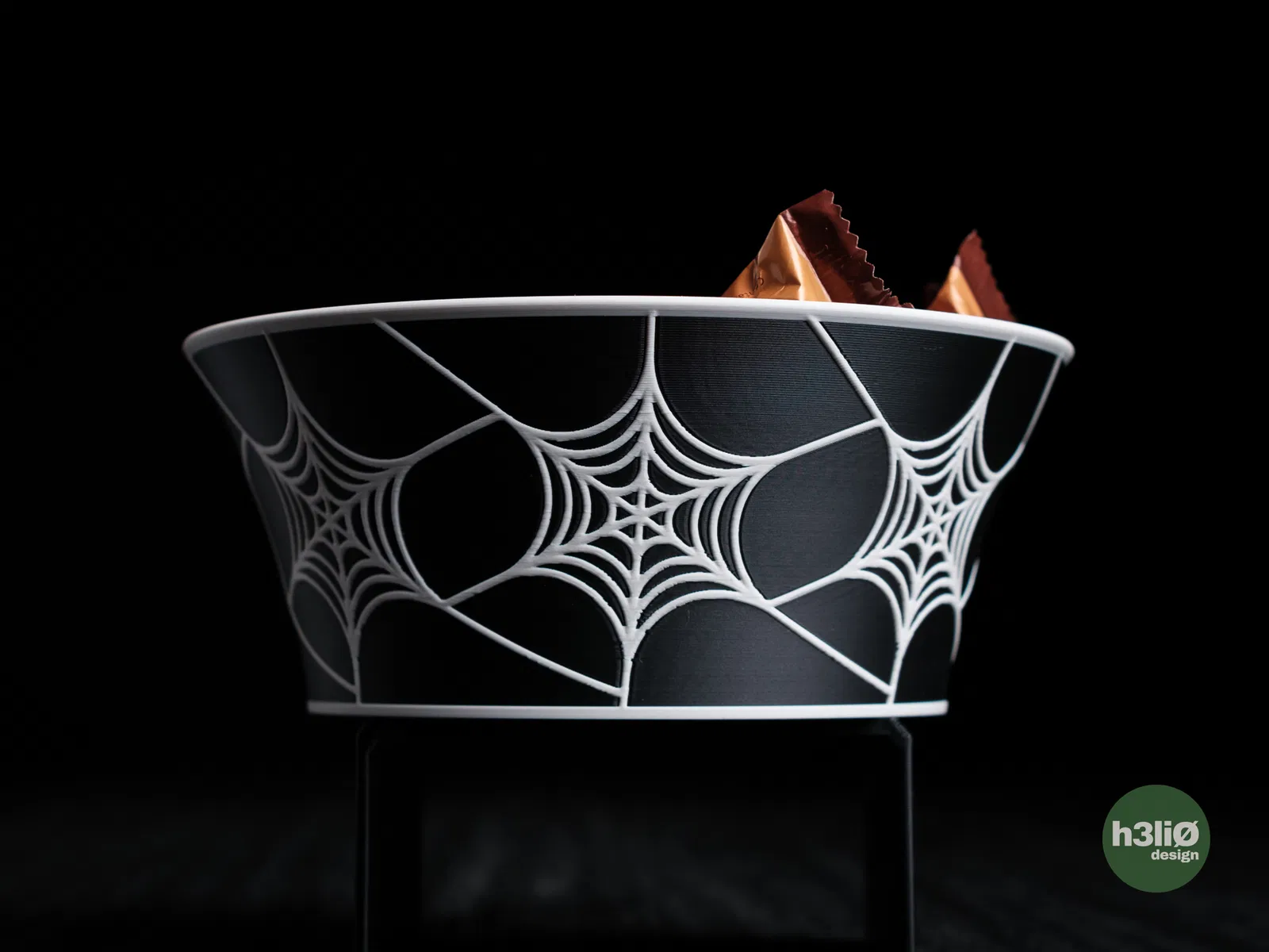 thiet ke to dung keo ngot theo phong cach toi gian cho dip halloween • co hai hinh dang to khac nhau voi hoa tiet mang nhen