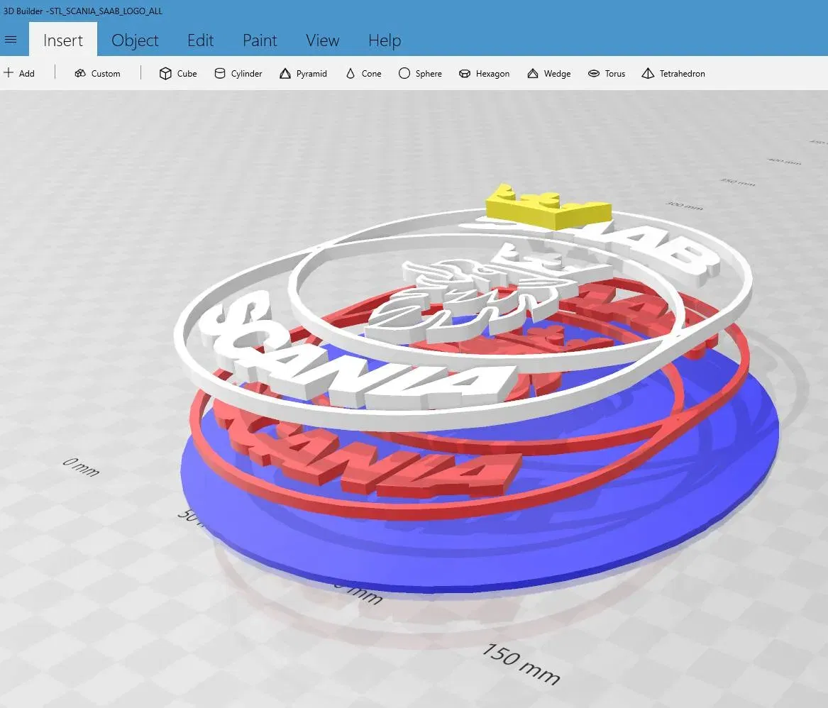 8.) Điều chỉnh độ dày của các đối tượng (2mm màu xanh, 3mm màu đỏ, 4mm màu trắng, 5mm màu vàng - đặt chúng trên mặt phẳng…) - lưu dưới dạng .STL hoặc .EMF tùy theo sở thích của bạn… và đi đến slicer!