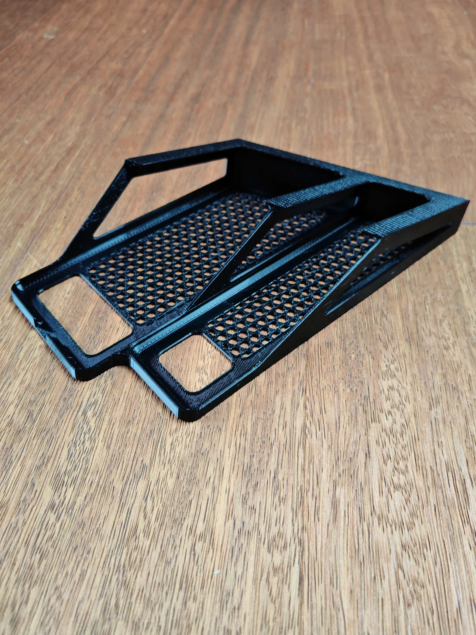 Với bản in 3D này, bạn có thể cất giữ điện thoại thông minh của mình bên dưới bàn làm việc, tạo thêm không gian và sự ngăn nắp trên bàn.