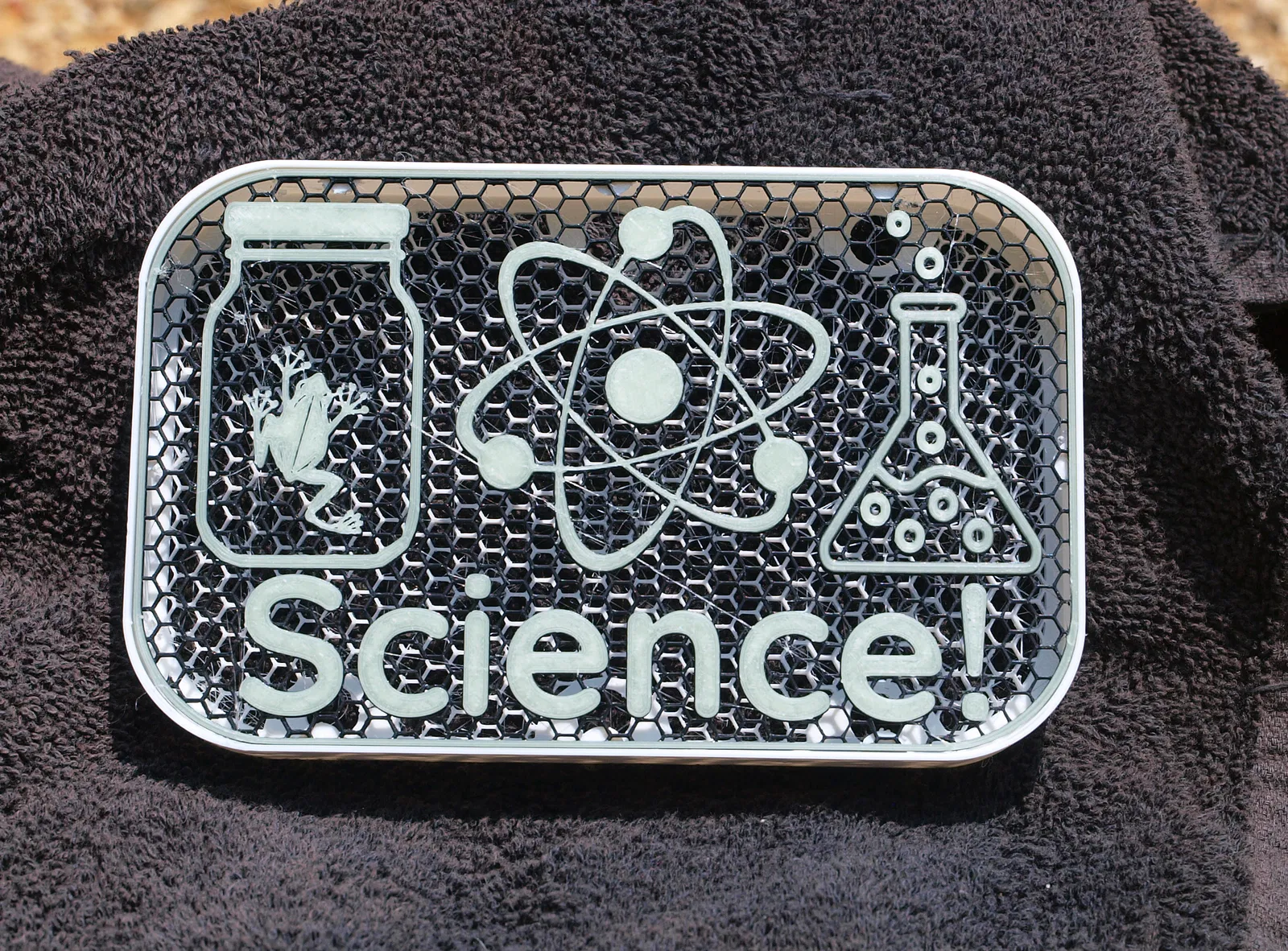 Biển báo "Khoa học" 100x160mm, có hình nguyên tử, cốc thí nghiệm và con ếch. Có thêm phiên bản chỉ hình ếch. Tui có cả mẫu Mesh, Solid và file gcode mẫu. Nhớ đổi màu khi in nha! Vừa với khung Shadowbox của tui đó.