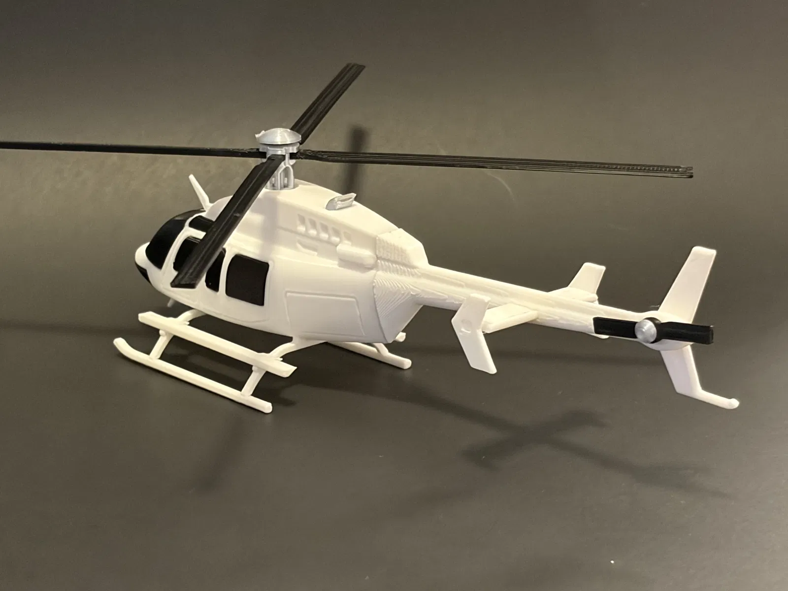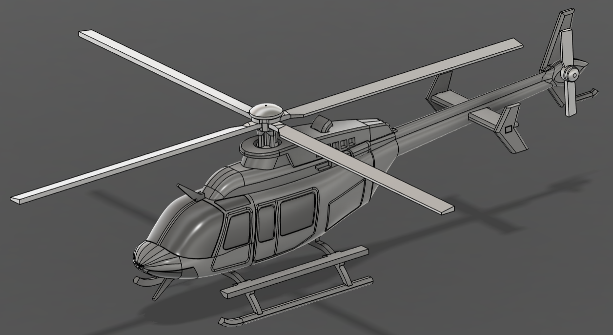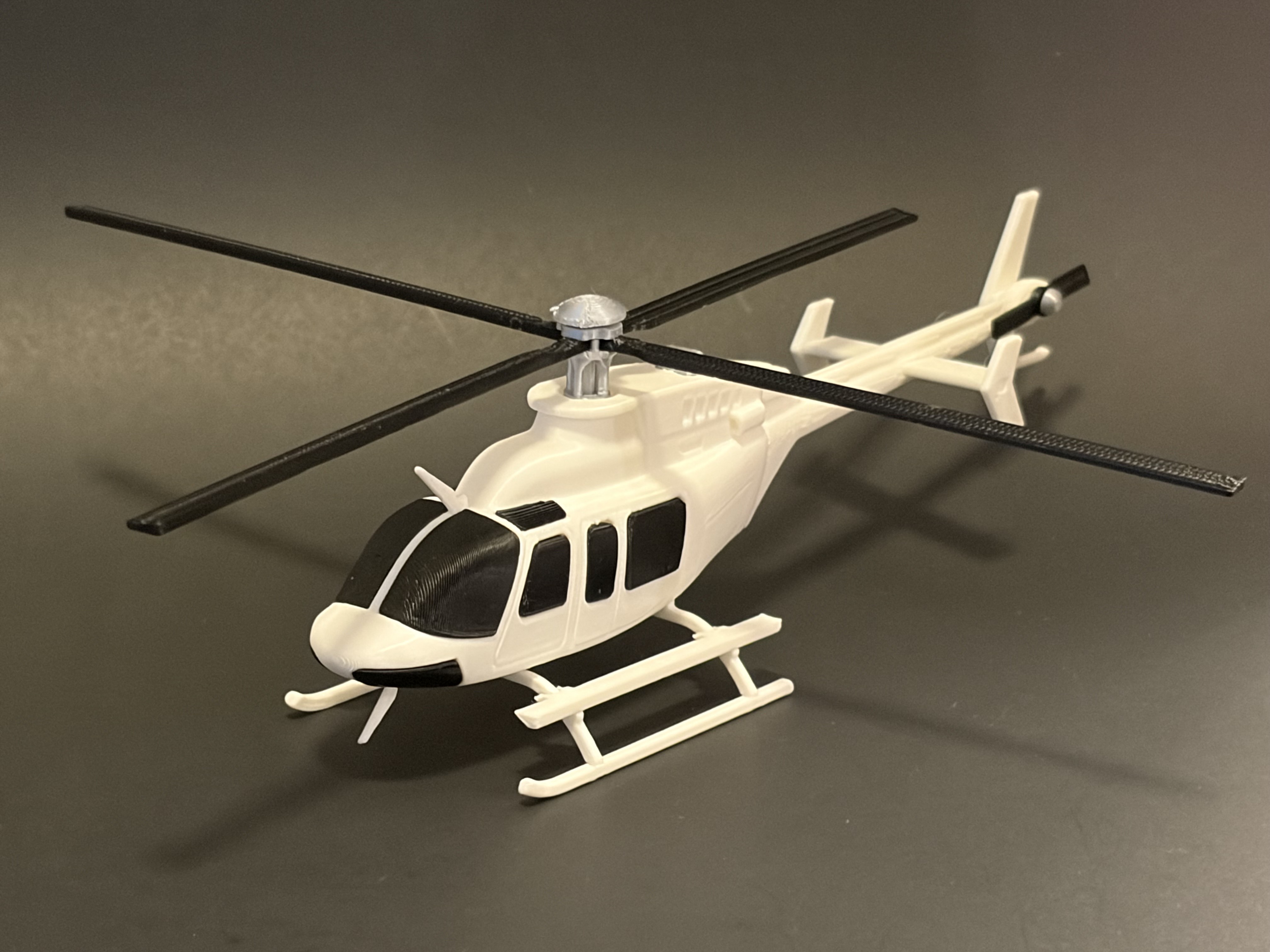 Mô hình trực thăng Bell 407 tỉ lệ, tách màu để in cửa sổ, tui thích thiết kế trực thăng và sẽ làm thêm nhiều mẫu nữa. Kích thước 200mm, có thể scale lên 125% nếu khó in. Mẫu tiếp theo khả năng cao là máy bay.