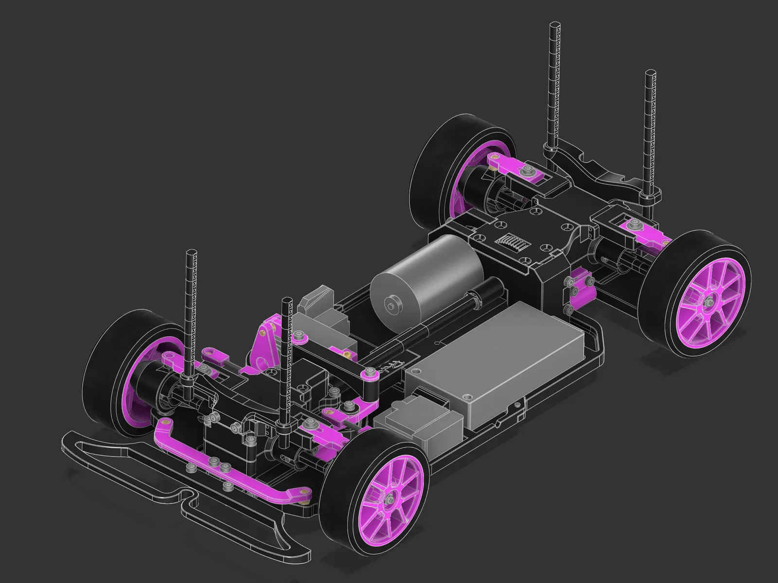 Chào mọi người, đây là khung gầm xe touring 4WD điều khiển từ xa bằng điện tỉ lệ 1/10, có chiều dài cơ sở 257mm. Bộ truyền động dựa trên nền tảng TT-02, tương thích với một số bộ phận của Tamiya TT-01/02. Tui chỉ đăng file STEP thôi, anh em thông cảm nha!