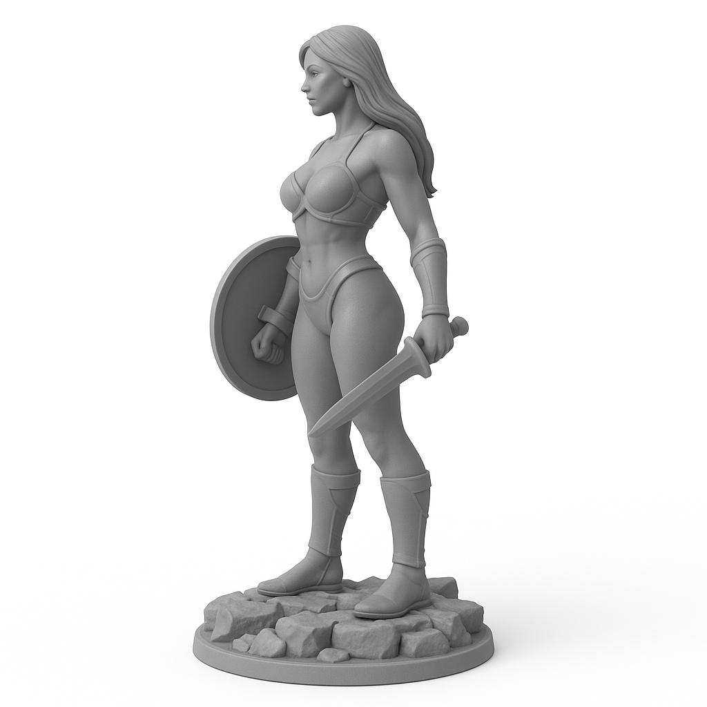 Mô hình Amazon Sentinel – Mô hình có thể sơn. Nữ chiến binh dũng mãnh với kiếm và khiên, đứng trên đế đá. Chi tiết sắc nét, hoàn hảo cho việc trưng bày, tô màu và chơi game nhập vai. Phù hợp với máy in FDM/Resin.