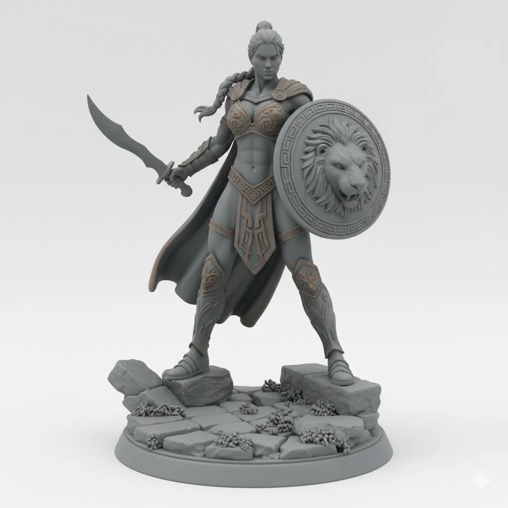 Giải phóng sức mạnh của Mô hình có thể sơn Lionheart Amazon. Mô hình chi tiết này khắc họa một nữ chiến binh mạnh mẽ, được trang bị kiếm cong và khiên chạm khắc hình sư tử gầm. Bộ giáp chi tiết, áo choàng bay bổng và tư thế vững chãi khiến cô ấy trở thành một tâm điểm ấn tượng.