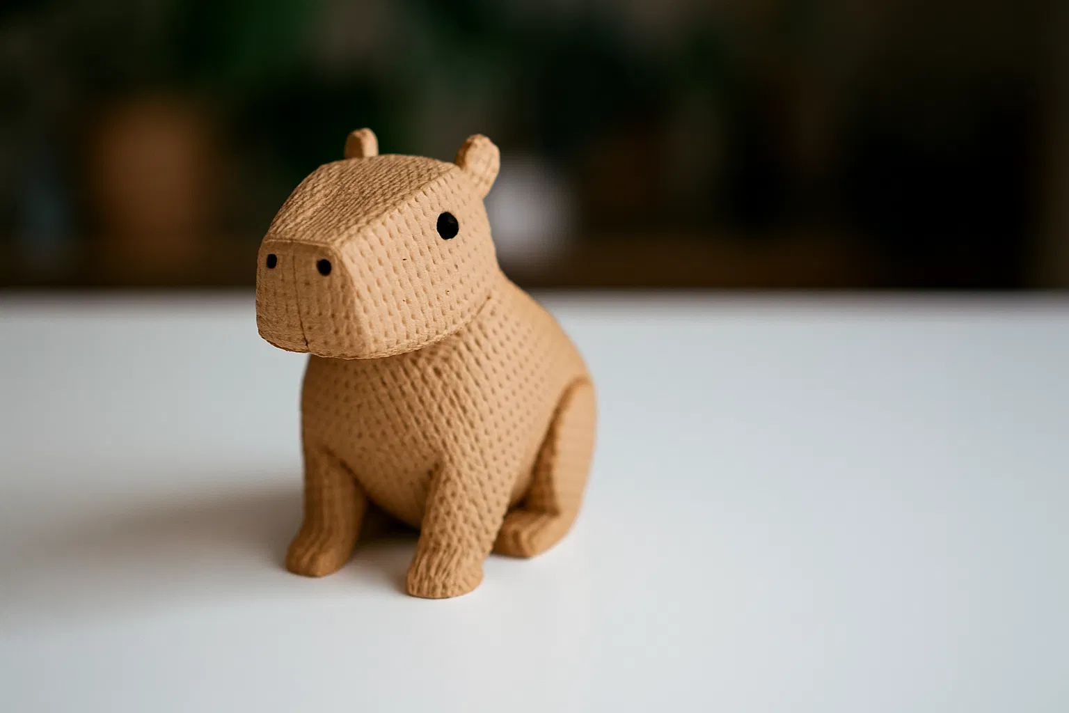 Đây không chỉ là một mô hình capybara bình thường; nó có kết cấu dệt kim đặc biệt trên khắp bề mặt, mang lại vẻ ngoài và cảm giác độc đáo, ấm cúng. Thiết kế cách điệu thể hiện hoàn hảo bản chất điềm tĩnh và yên bình của capybara, làm cho nó trở thành một phụ kiện hoàn hảo cho bàn làm việc, kệ sách của bạn hoặc làm quà tặng chu đáo cho người yêu động vật.