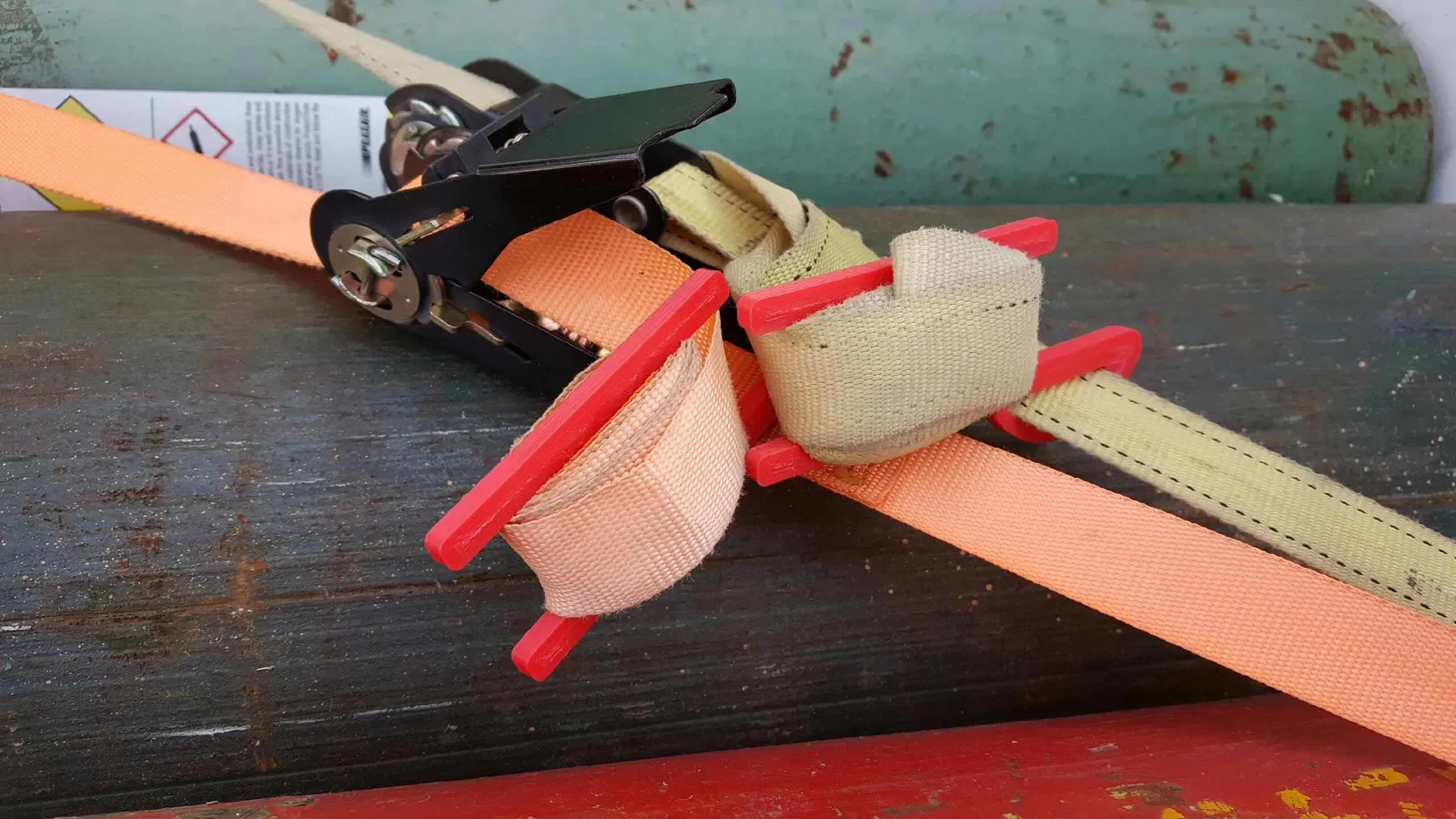 Thiết bị tiện lợi để quản lý phần dây buộc lỏng lẻo của dây chằng. Giữ cho bạn và hàng hóa của bạn an toàn. Chỉ cần trượt vào giữa sợi dây, cuộn lại, rồi kẹp vào phần dây căng. Có hai phiên bản - một cho dây 1 inch và một cho dây 2 inch.
