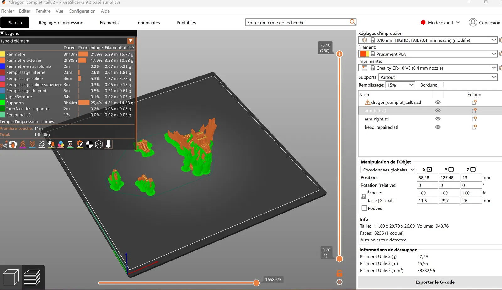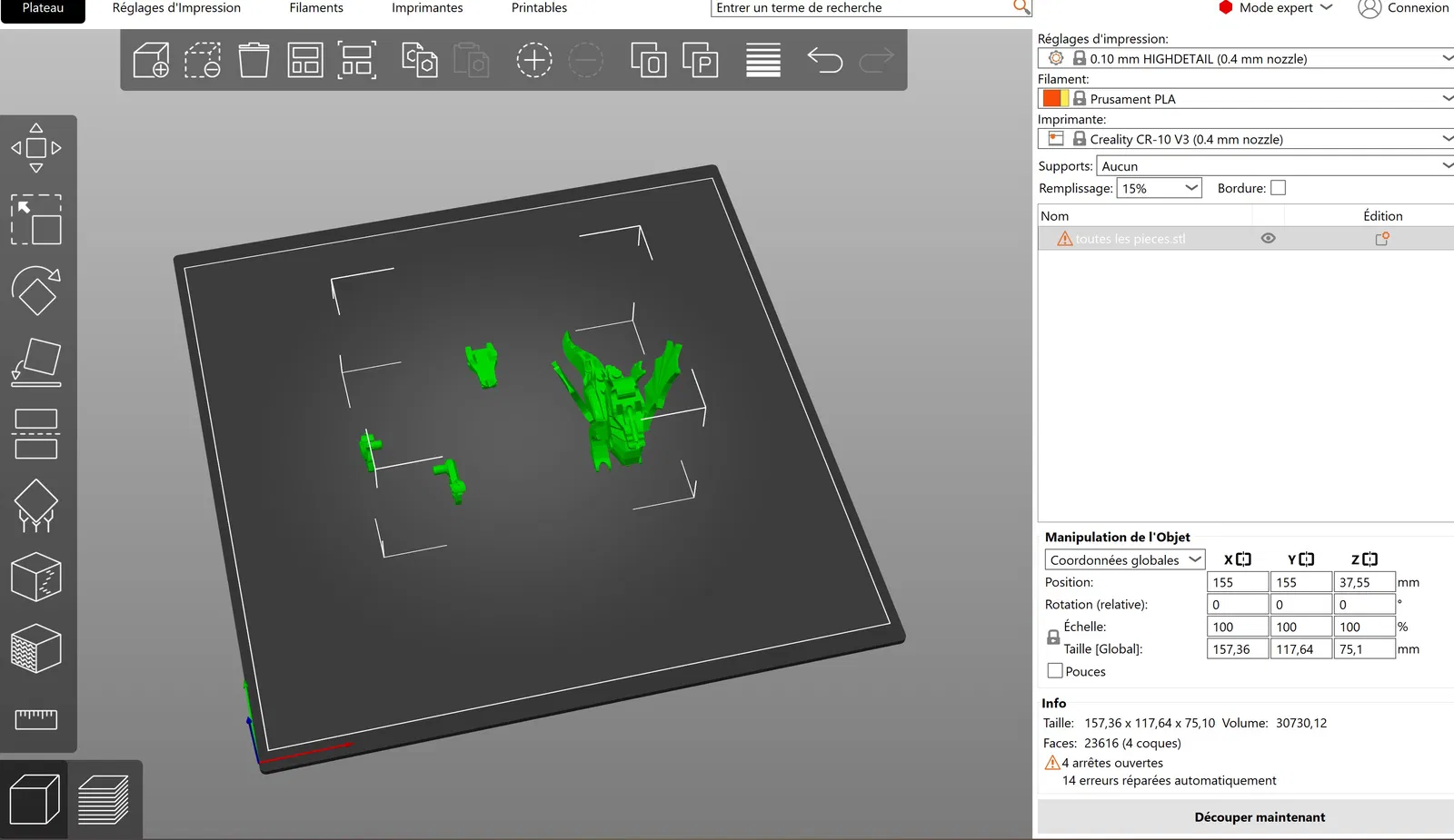 - Kiểm tra slicer của bạn để có kích thước phù hợp của 4 cục lego. tùy thuộc vào filament và máy in của bạn. khi tôi tải xuống một bộ phận từ người khác, tôi luôn cắt bộ phận có cục lego để đảm bảo chúng vừa với các bộ phận Lego gốc và minifigs. Sau đó, tôi in toàn bộ bộ phận.
