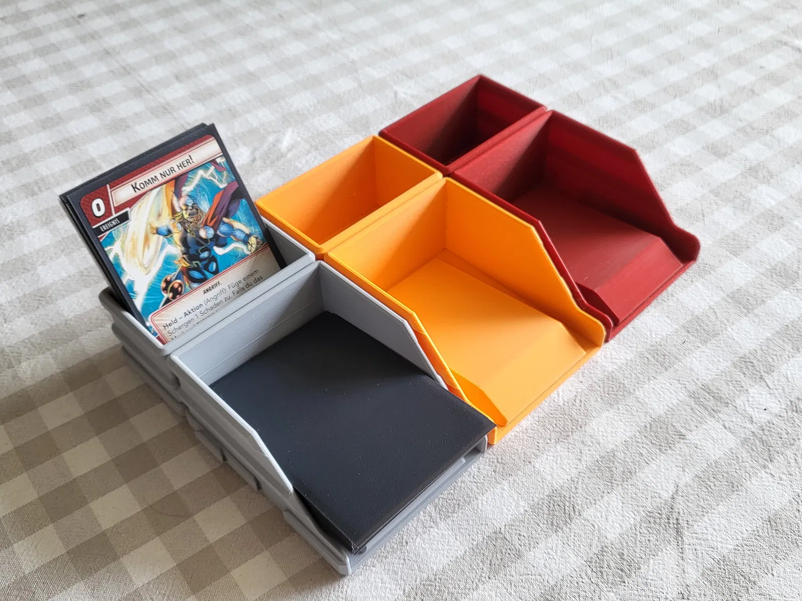 Một hộp chia thẻ có thể kết nối với các modul khác. Hộp này có các bộ phận lót với nhiều góc nghiêng khác nhau, được thiết kế để bạn in với chiều cao lớp 0.1 mm cho bề mặt mịn. Việc lắp ráp cũng rất đơn giản, chỉ cần ấn cho đến khi khớp vào vị trí.