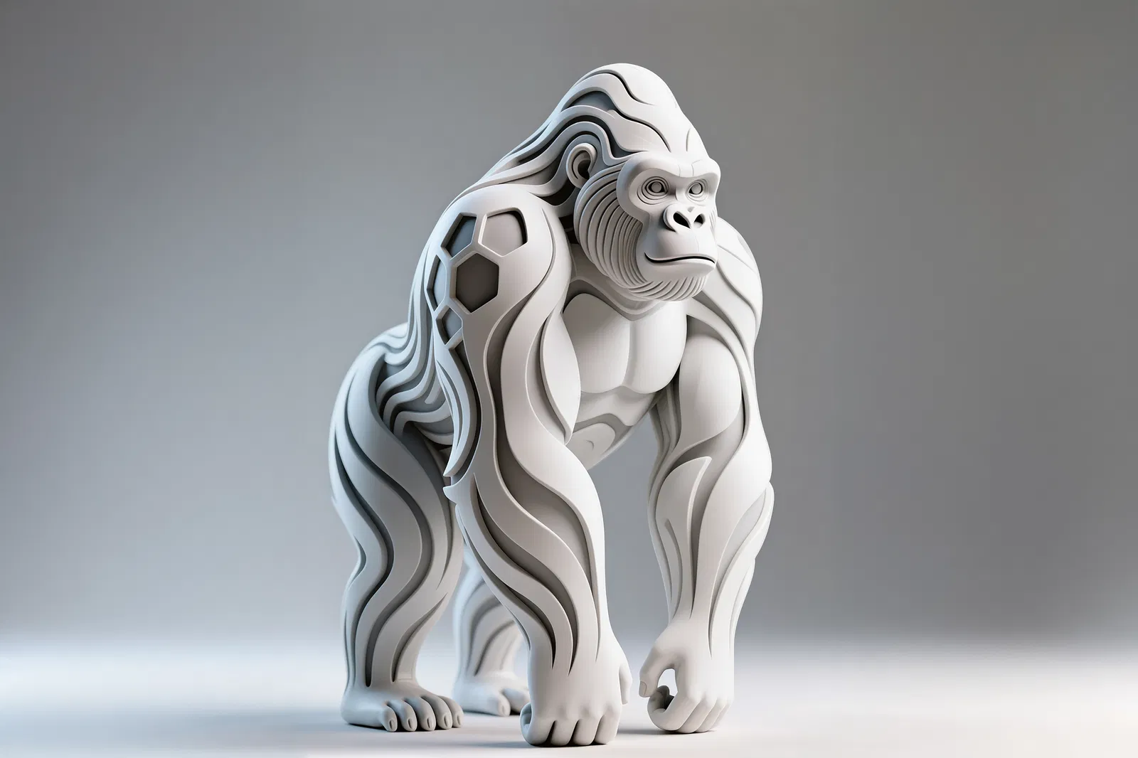 Mô hình điêu khắc Gorilla Hexa, một tác phẩm nghệ thuật độc đáo về loài khỉ đột, hoàn hảo để in 3D và trưng bày.