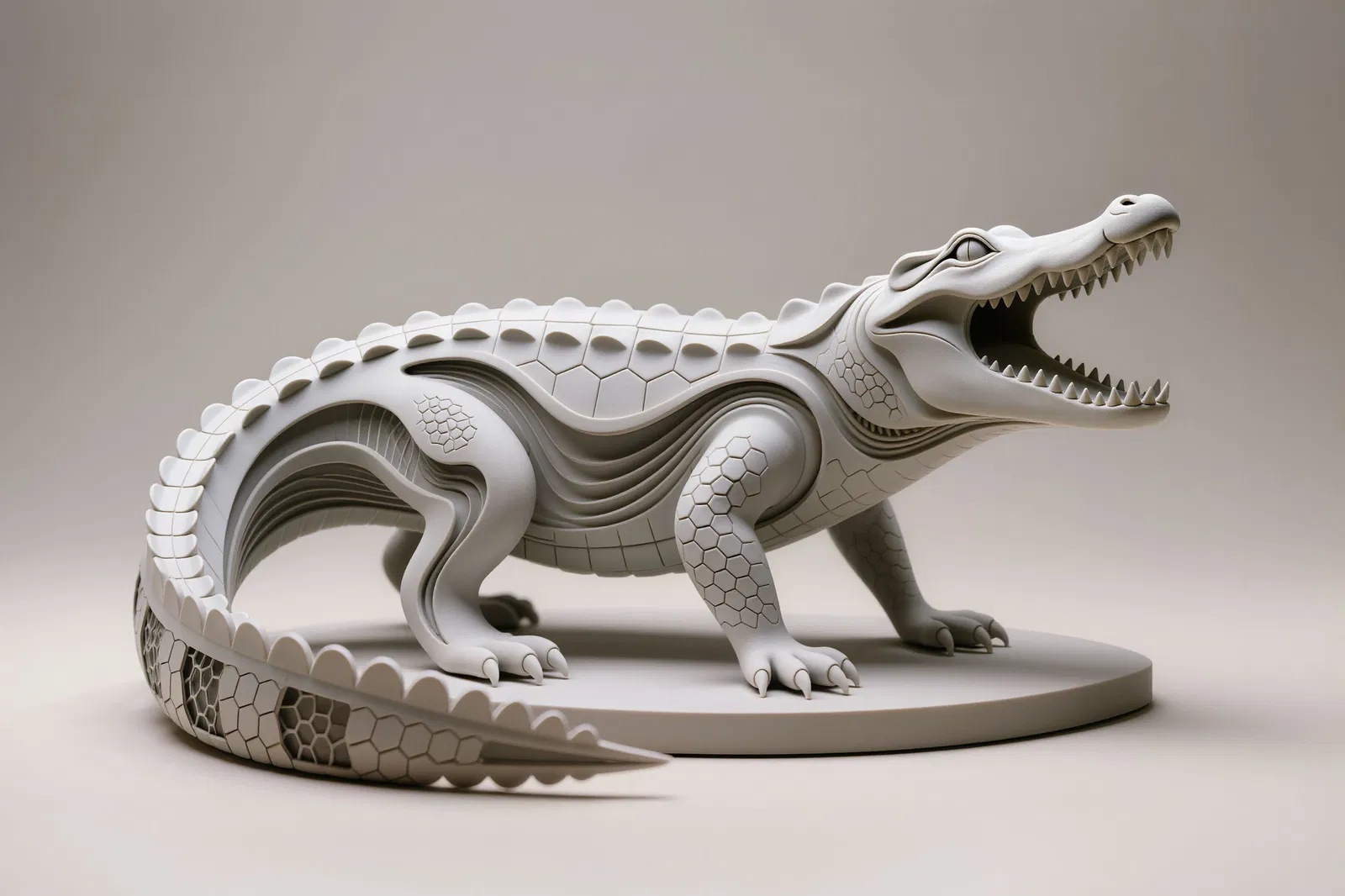 Bức tượng Krokodil, Hexa là một tác phẩm điêu khắc độc đáo, thể hiện hình dáng con cá sấu với các cạnh hình lục giác ấn tượng. Đây là một vật trang trí tuyệt vời cho bàn làm việc hoặc kệ sách, mang đến nét chấm phá nghệ thuật và hiện đại cho không gian của bạn.