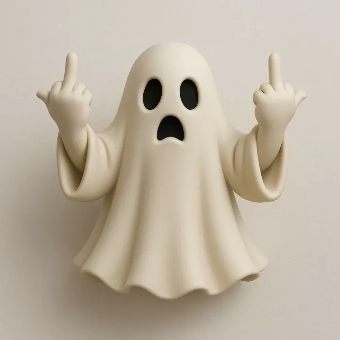 Mô hình 'Ghost with Attitude' mang đến một sự biến tấu vui nhộn và có chút nổi loạn cho hình tượng con ma truyền thống, sử dụng thiết kế ma bằng tấm vải kinh điển nhưng thể hiện sự hài hước qua cử chỉ của nó.