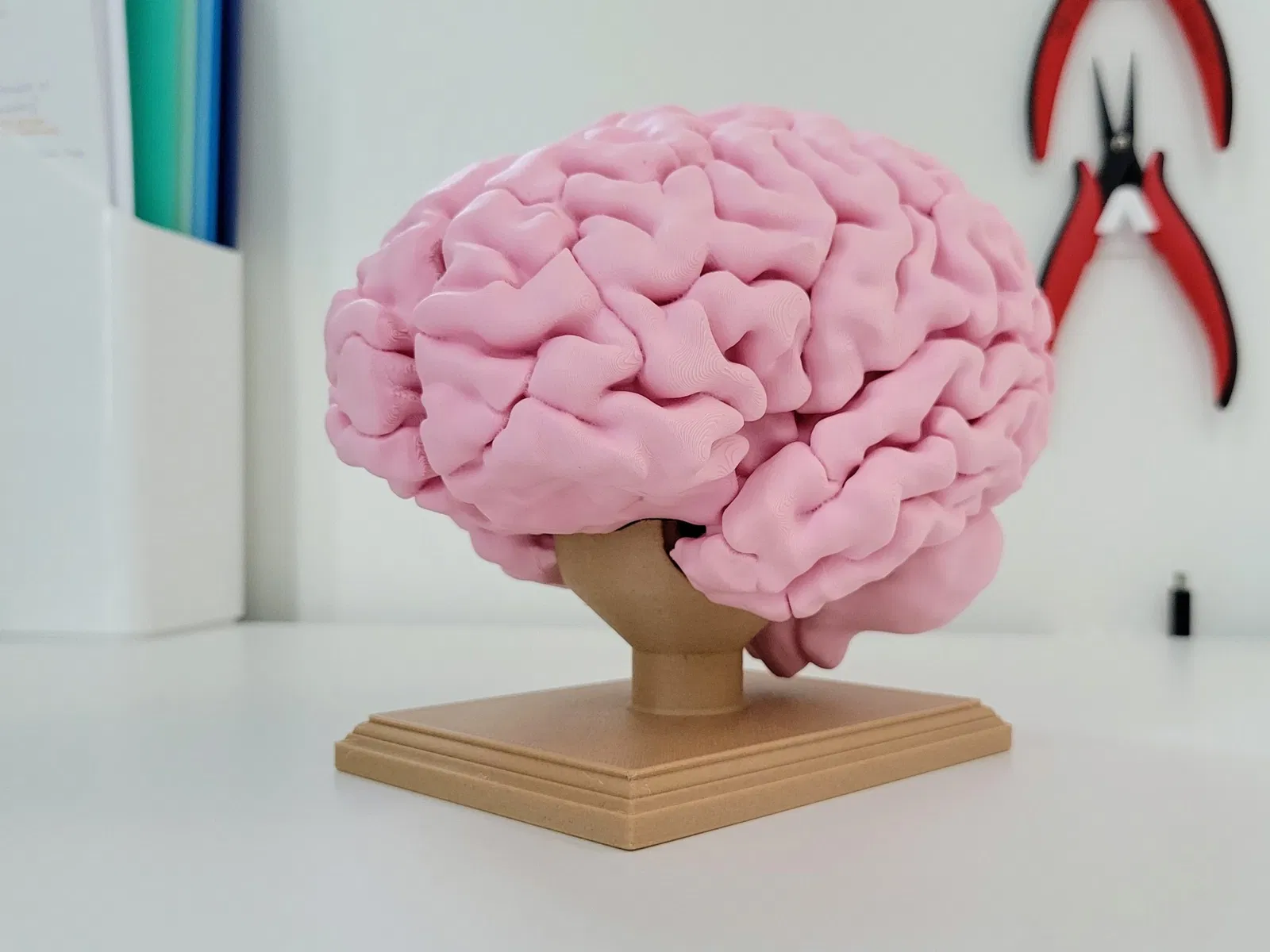 Đây là một mô hình kích thước đầy đủ của bộ não của riêng tôi, hoàn chỉnh với nam châm để giữ các bán cầu lại với nhau và một giá đỡ hiển thị.