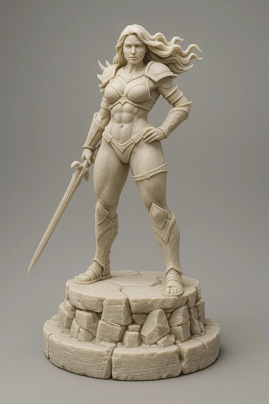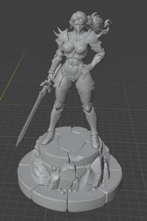 Mô hình nữ chiến binh sử thi với thanh kiếm và đế đá, hoàn hảo để tô màu và trưng bày trên bàn cờ giả tưởng. Thích hợp cho người mới bắt đầu và nhà sưu tập.