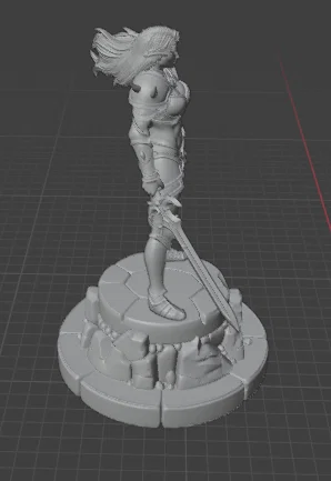 Nữ chiến binh sử thi với thanh kiếm và đế đá, hoàn hảo để tô màu và trưng bày trên bàn cờ giả tưởng.