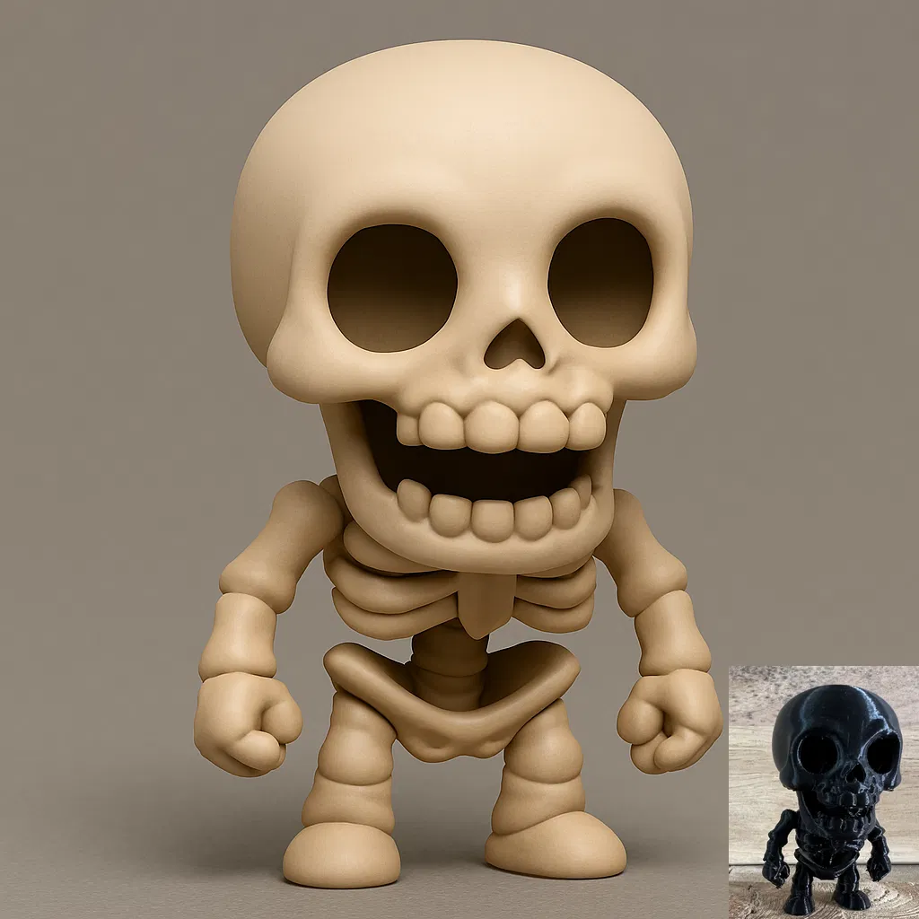 Tạo hình một bộ xương Chibi dễ thương bằng công nghệ AI, hoàn hảo cho mùa Halloween hoặc làm vật trang trí độc đáo. Đừng quên like, tải về và chia sẻ sản phẩm in của bạn nhé!