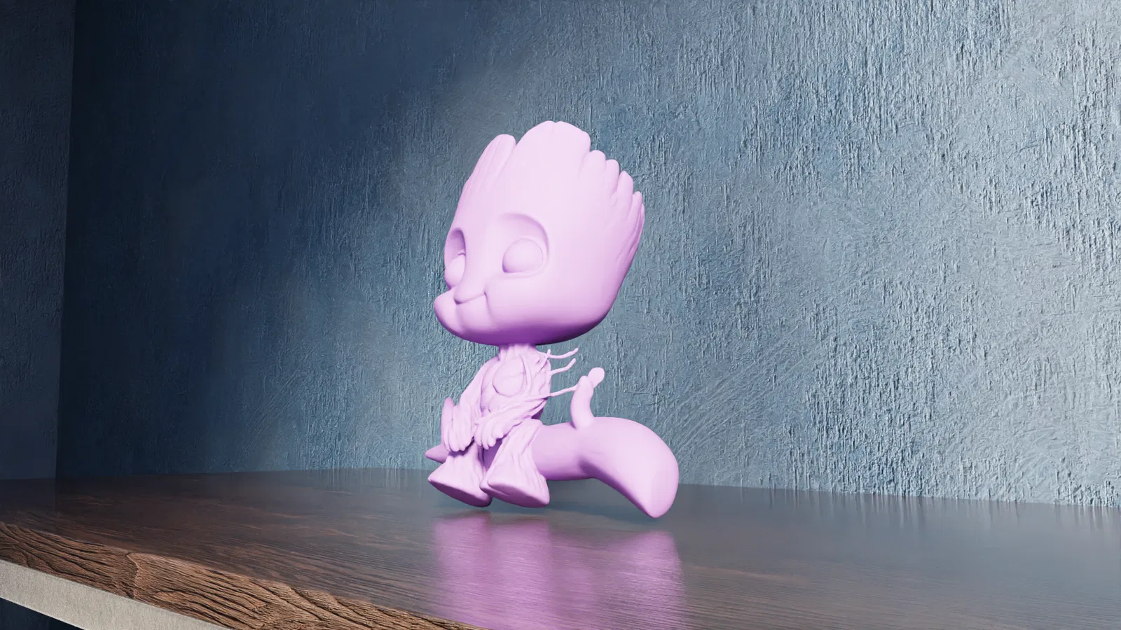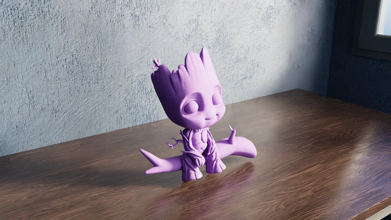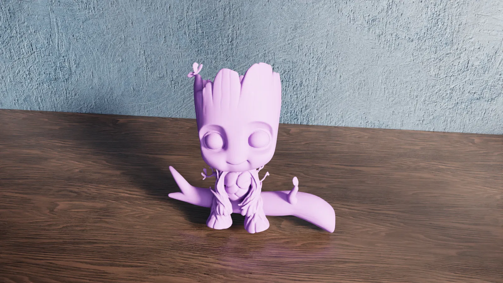 Mô hình Groot này thể hiện sinh vật giống cây thân gỗ được yêu thích đang ngồi yên bình trên một cành cây, làm nổi bật các vân gỗ tự nhiên và vẻ ngoài đáng yêu của nó. Lý tưởng để in 3D như một món đồ sưu tầm hoặc vật trang trí quyến rũ.