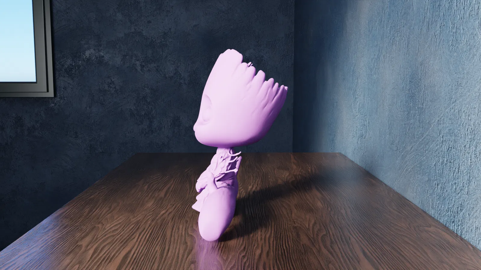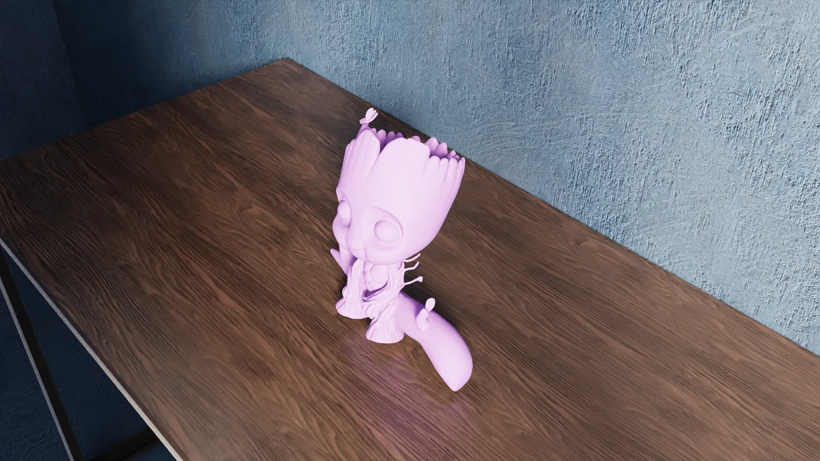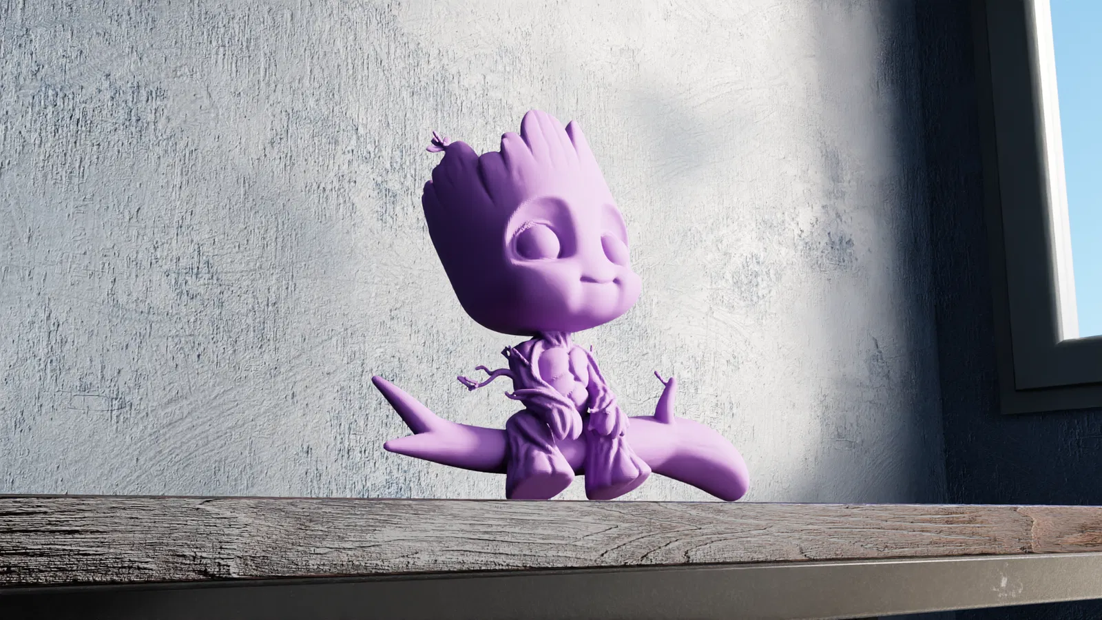 Mô hình Groot này thể hiện sinh vật giống cây thân gỗ được yêu thích đang ngồi yên bình trên một cành cây, làm nổi bật các vân gỗ tự nhiên và vẻ ngoài đáng yêu của nó. Lý tưởng để in 3D như một món đồ sưu tầm hoặc vật trang trí quyến rũ.