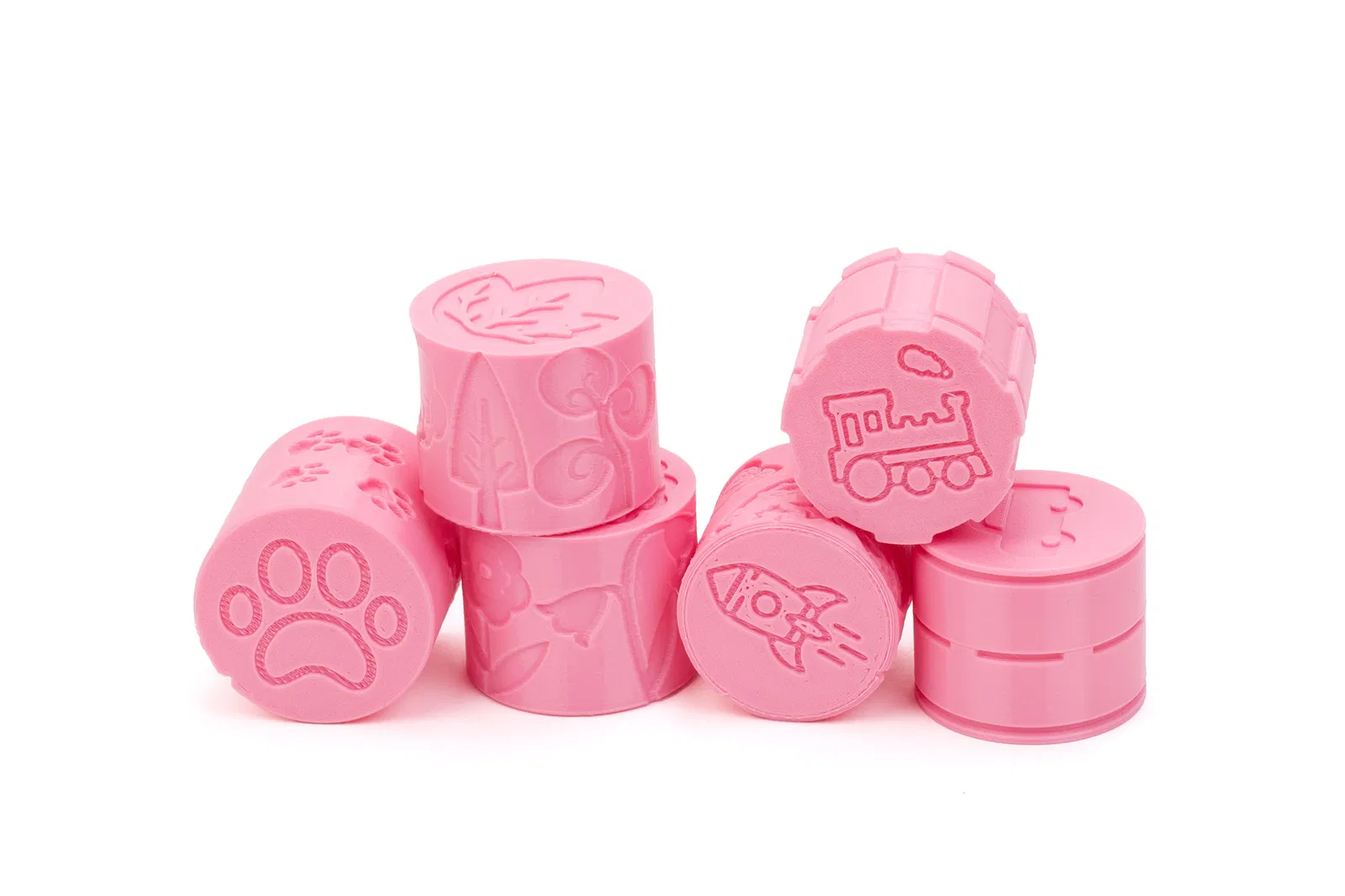 Bạn có thể dùng chúng để đóng dấu và in vào đất nặn hoặc cát động. Những cái trục lăn này giúp phát triển các kỹ năng vận động tinh, vốn từ vựng (tạo câu chuyện) và trí tưởng tượng.