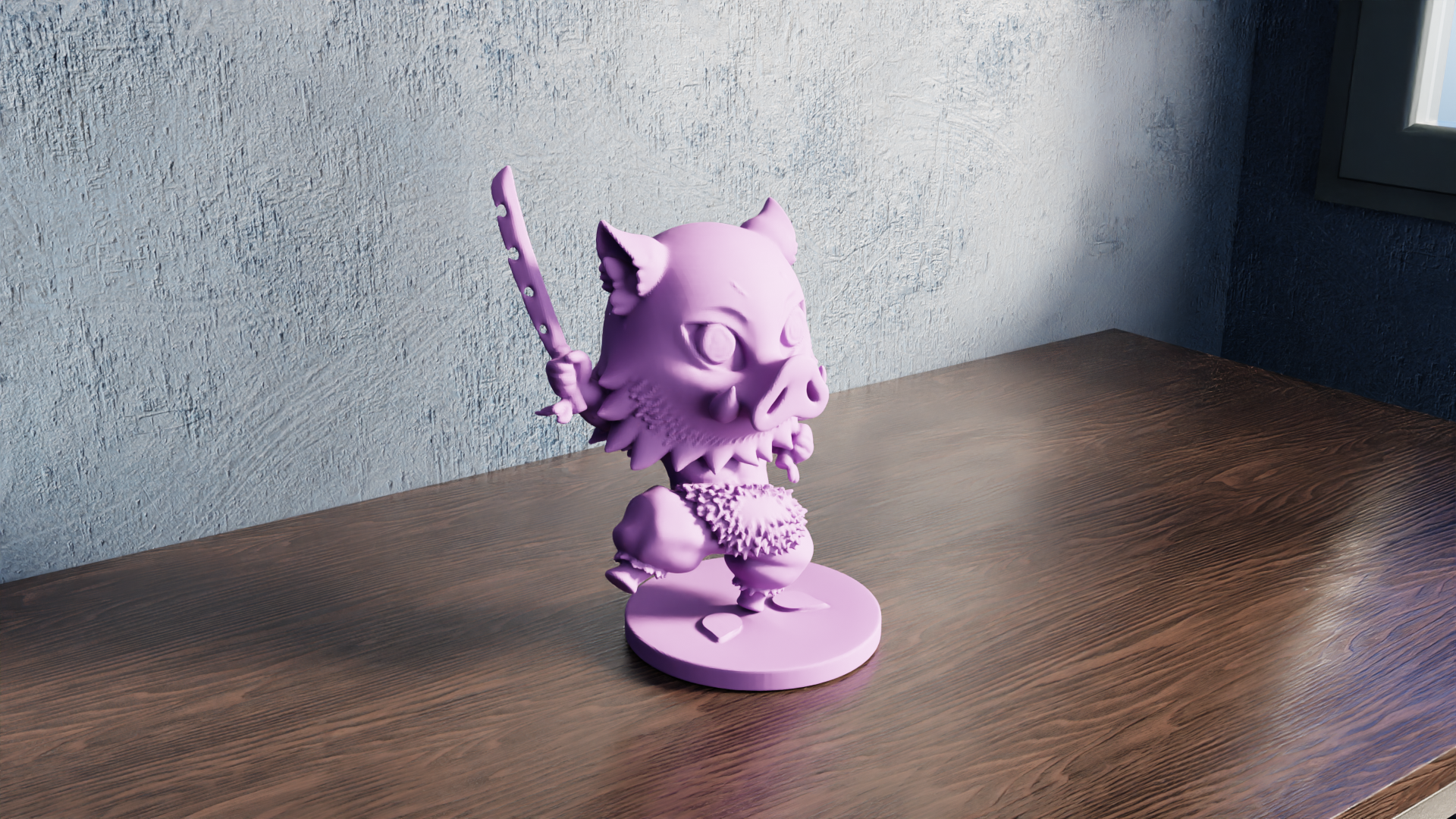 Mô hình Chibi Inosuke này tái hiện nhân vật Sát Quỷ đầy mạnh mẽ theo phong cách chibi đáng yêu. Với chiếc mặt nạ heo đặc trưng, mái tóc gai góc và tư thế năng động với một chân giơ lên, kiếm sẵn sàng tấn công, nó pha trộn năng lượng hoang dã của cậu ấy với sự dễ thương tinh nghịch. Hoàn hảo để in 3D làm tượng nhỏ sưu tầm, đồ trang trí bàn làm việc, hoặc một món quà độc đáo cho người hâm mộ Kimetsu no Yaiba và những người yêu thích nhân vật cách điệu.