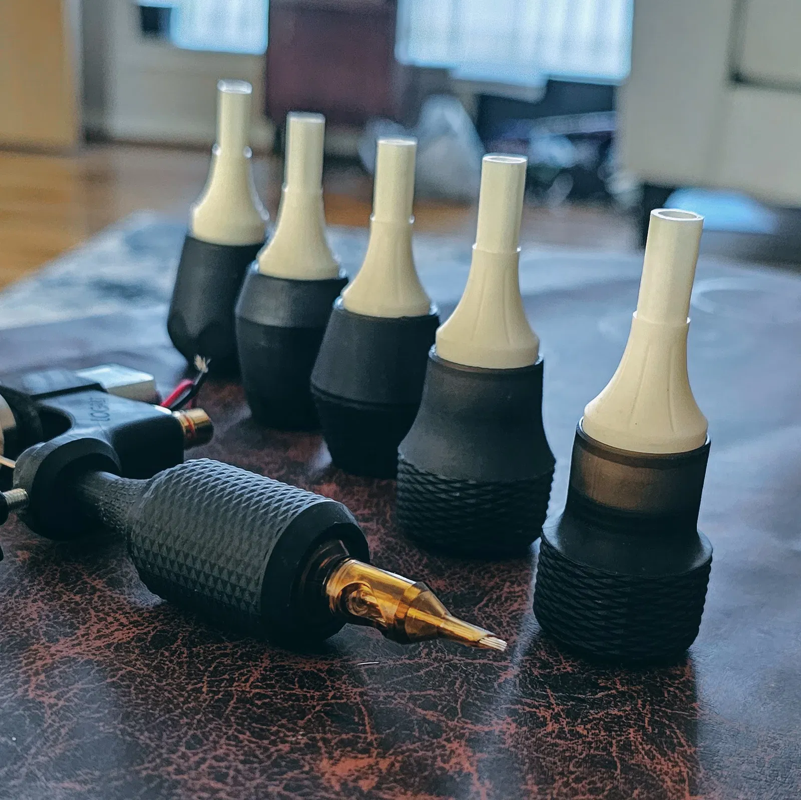 Kẹp giữ ống mực xăm (cartridge grip holder) cho phép bạn gắn ống mực xăm vào máy xăm truyền thống hoặc quay. Có nhiều phiên bản và cách điều chỉnh độ sâu kim đơn giản.