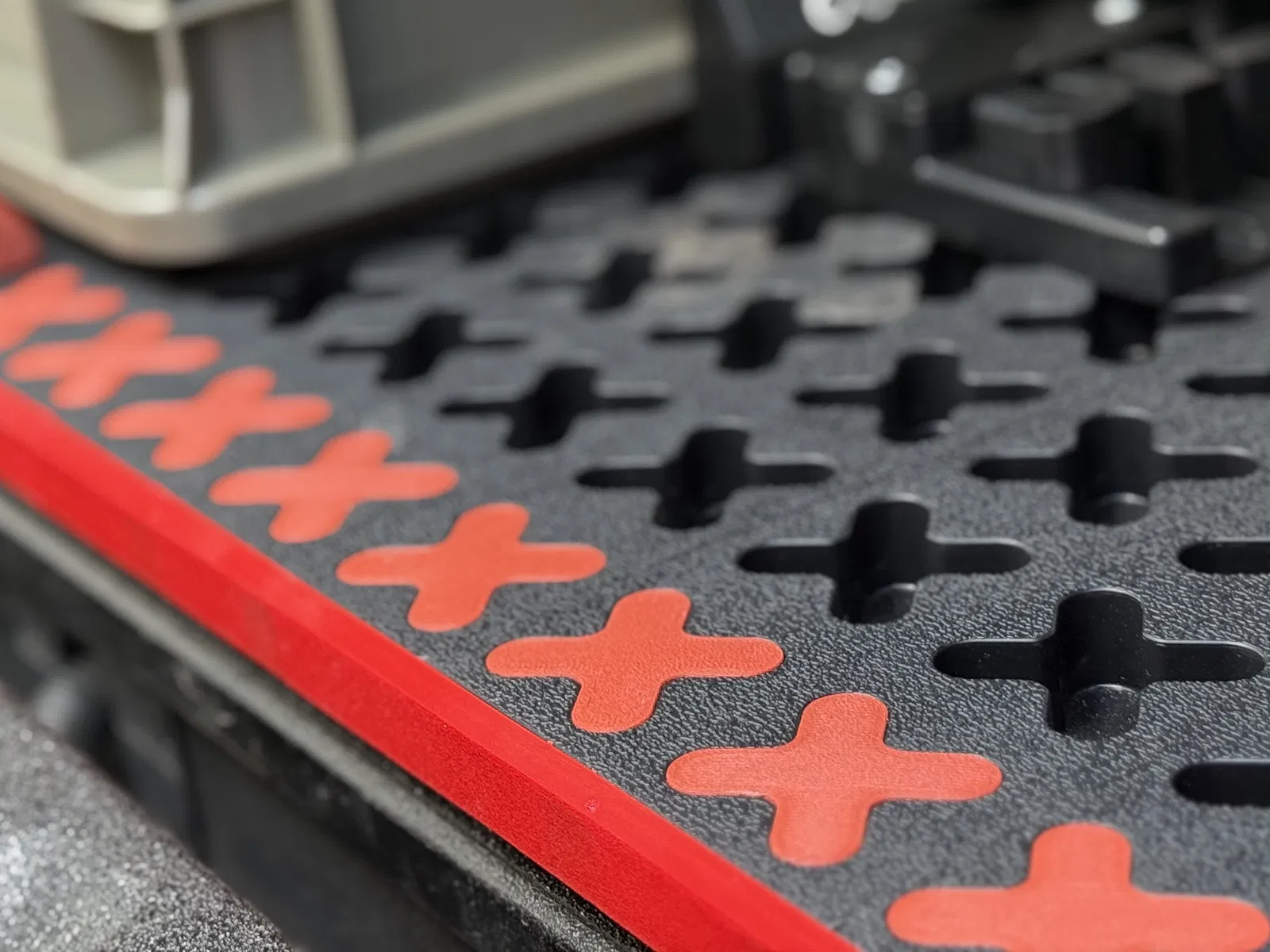 Nẹp viền mỏng cho hệ thống chở hàng thùng xe Tmat. Có chỗ để thêm băng keo VHB giúp giữ chắc chắn hơn.