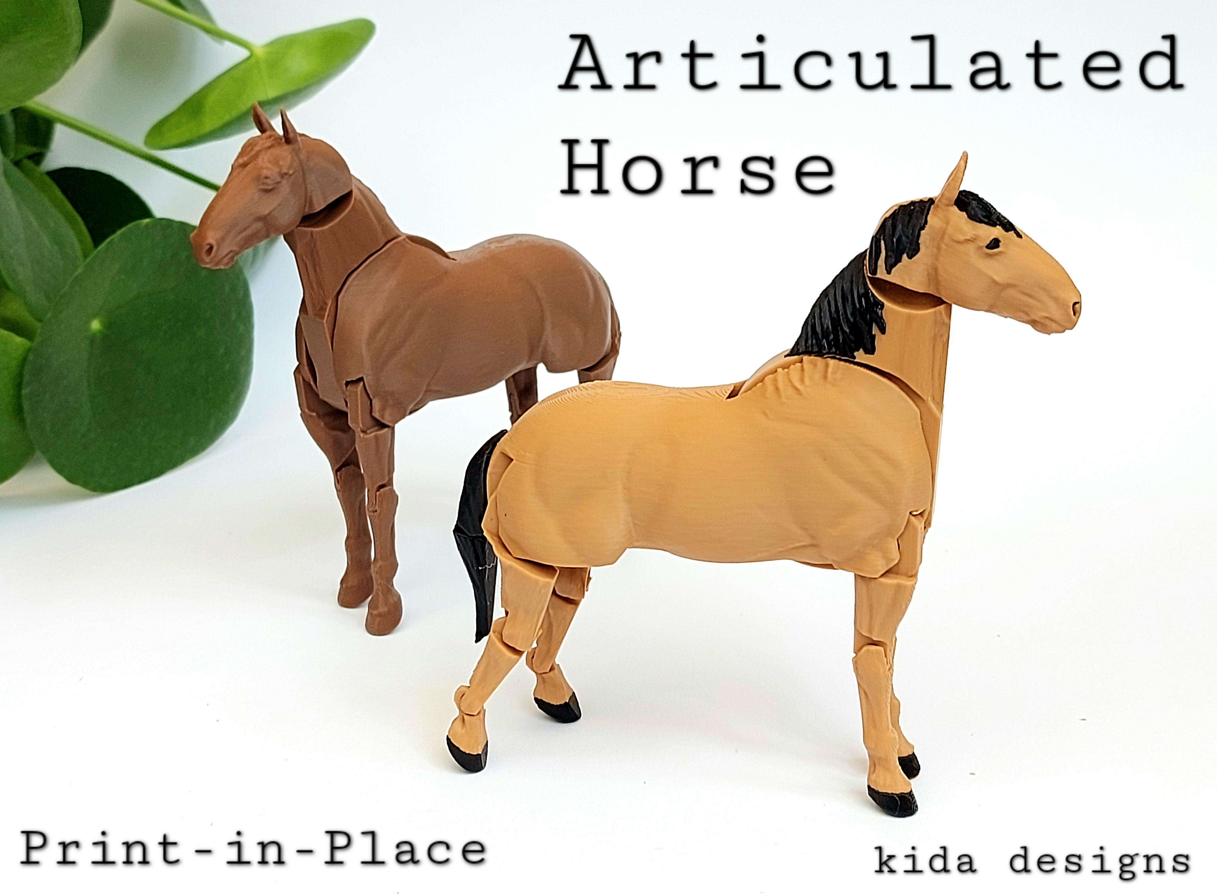 Tui giới thiệu mẫu ngựa khớp nối với 14 khớp, in liền mạch không cần hỗ trợ. Mẫu này đòi hỏi độ bám dính tốt, có thể phóng to nhưng không nên in nhỏ. Có tệp STL và .3mf. Dù in đa sắc hay đơn sắc đều đẹp, nhưng tui đề xuất sơn acrylic. Khớp lỏng lẻo nên khó đứng nhưng vui hơn khi chơi.
