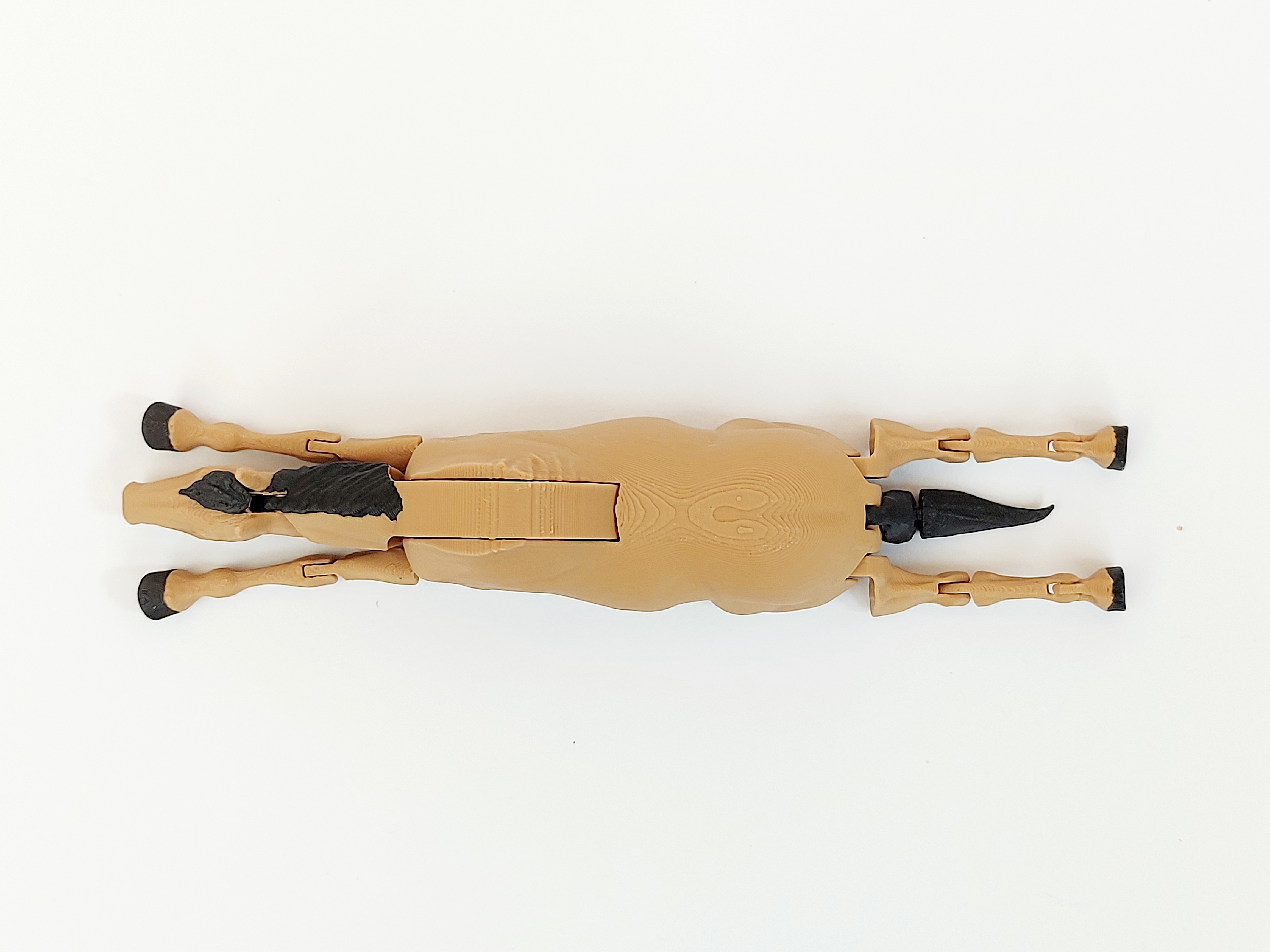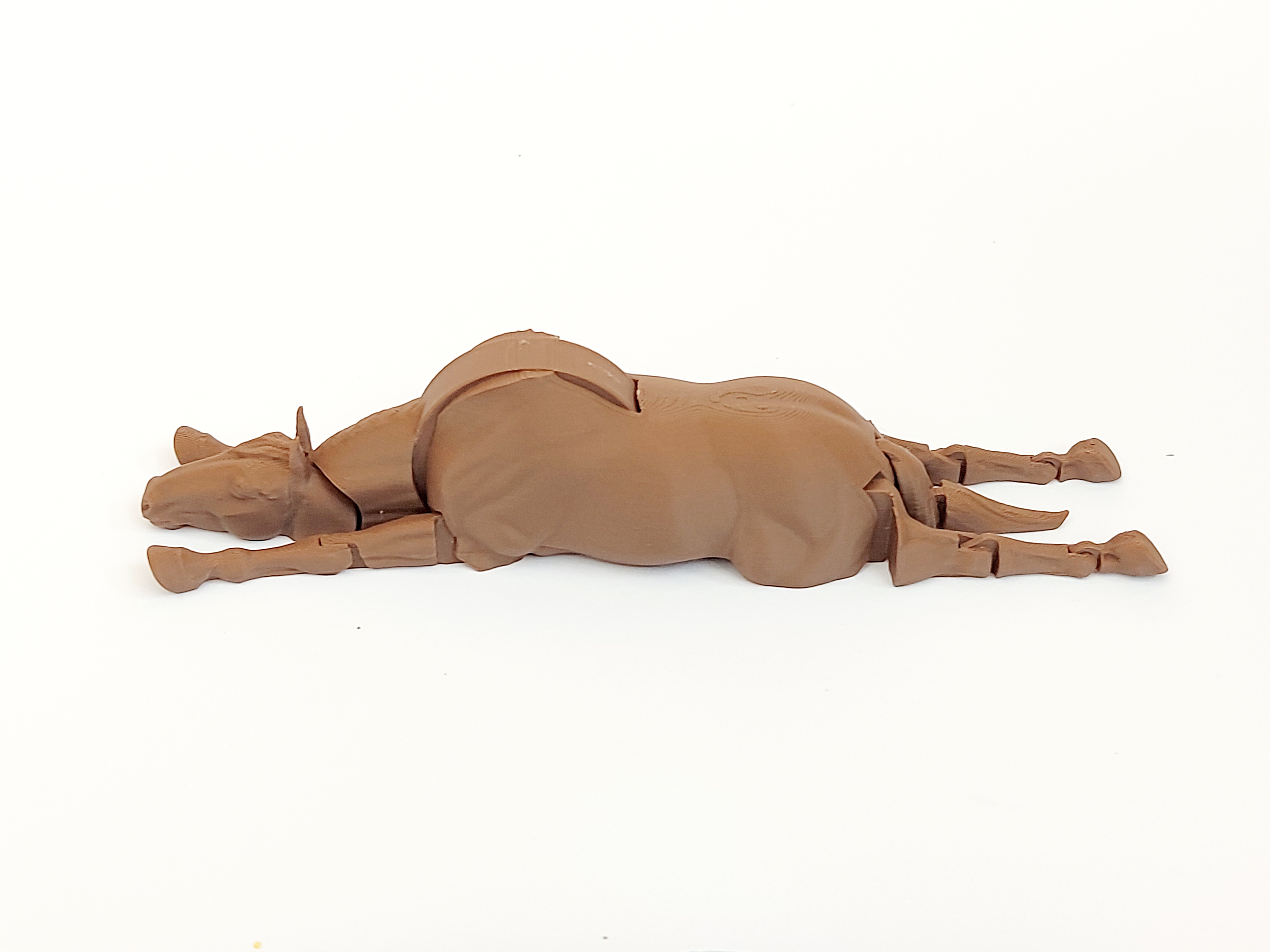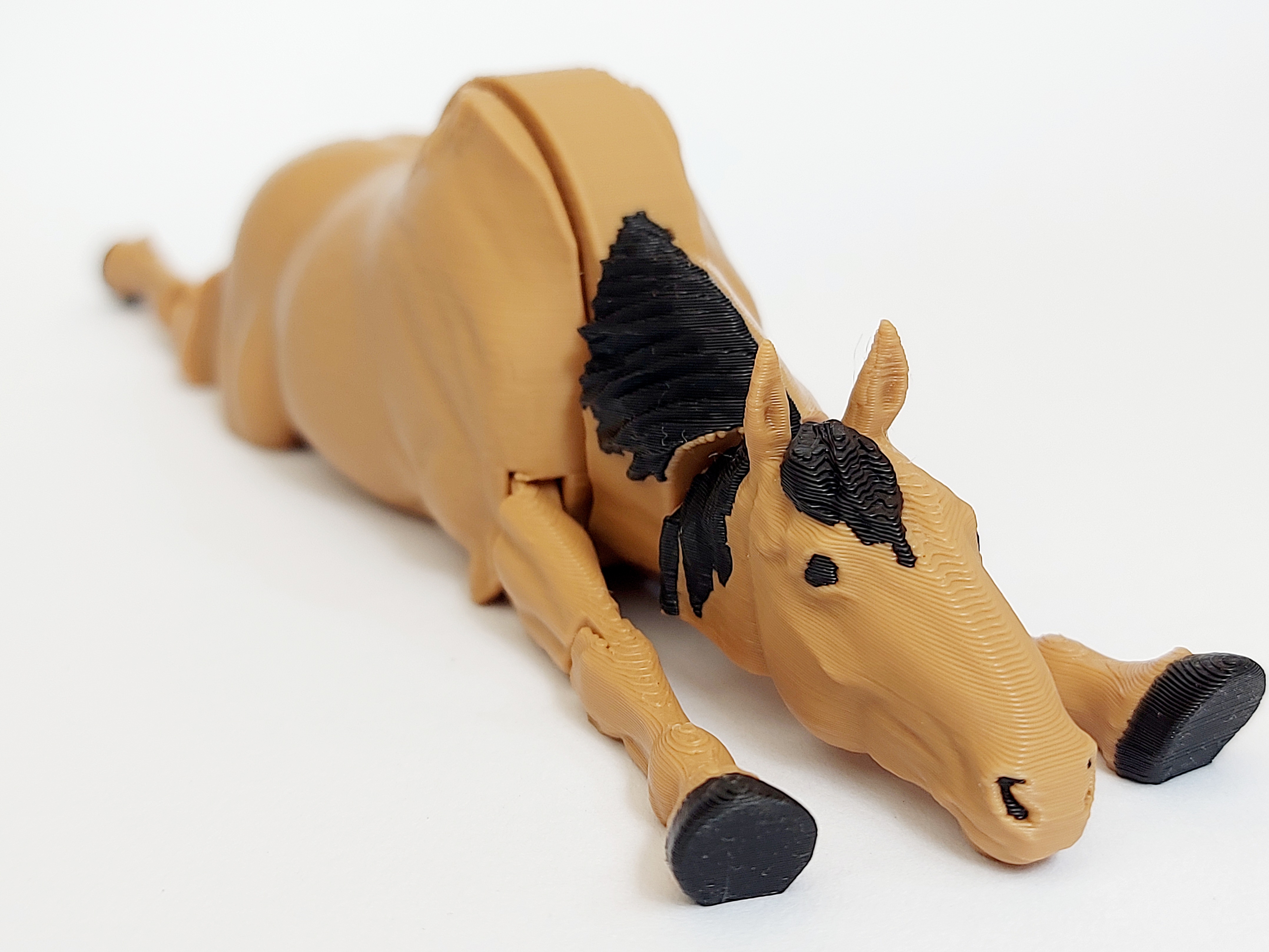 Chú ngựa này có tổng cộng 14 khớp nối và in liền mạch, không cần hỗ trợ. Với hình dạng phức tạp của lớp đầu tiên, mẫu này đòi hỏi khả năng kiểm soát độ bám dính mặt bàn tốt. Mẫu có thể phóng to, nhưng không khuyến khích in nhỏ hơn.