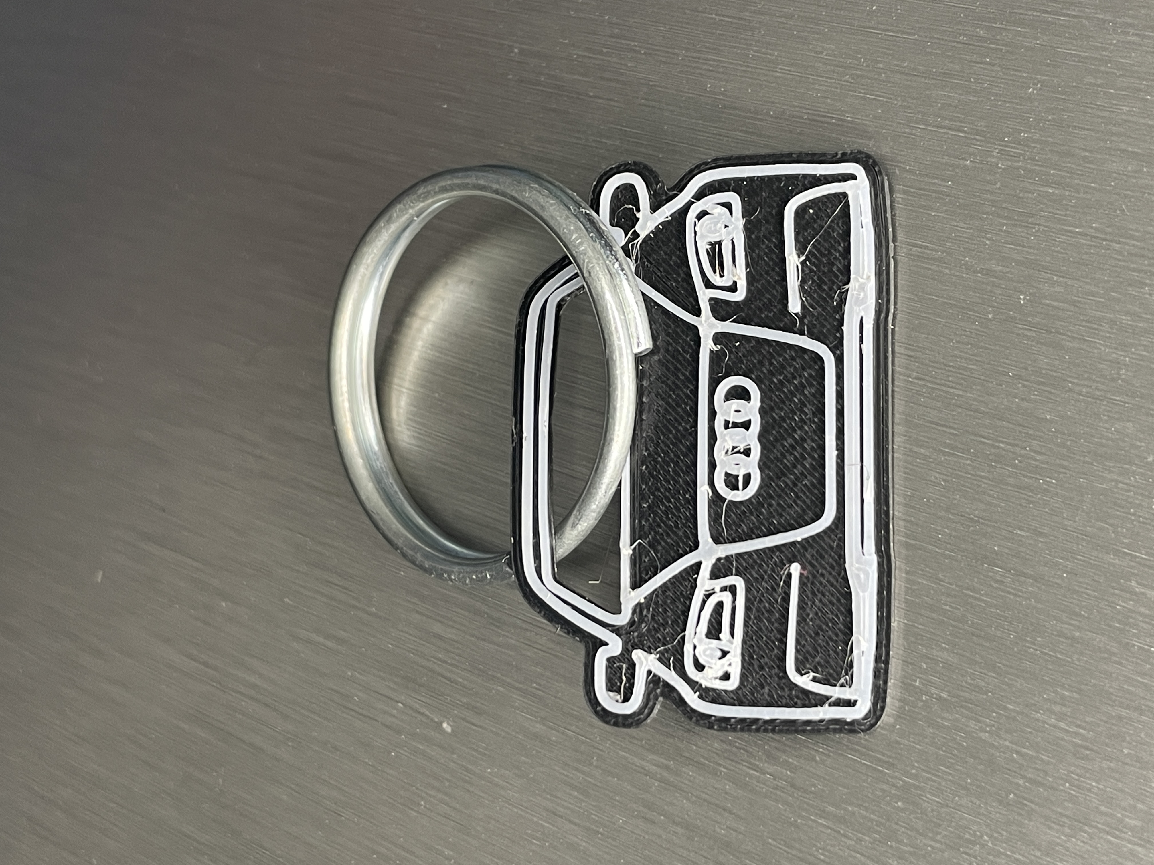 Móc khóa Audi A3 Mặt Trước, được thiết kế để in với thay đổi vật liệu. Hướng dẫn in chi tiết với độ dày lớp 0.10mm, độ lấp đầy 15% và đổi màu ở 1.10mm. Lý tưởng cho người yêu thích xe Audi.
