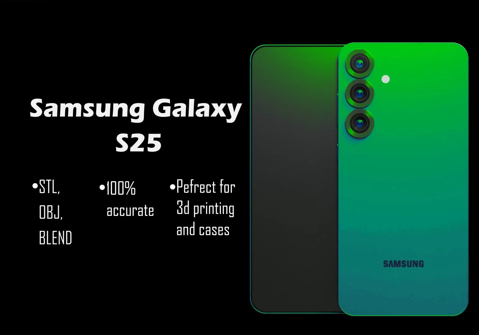 Mô hình 3D Samsung Galaxy S25, chiếc điện thoại được chi tiết hóa đáng kinh ngạc, cực kỳ phù hợp để thiết kế ốp lưng, chân đế, phụ kiện, v.v., file STL, OBJ và BLEND