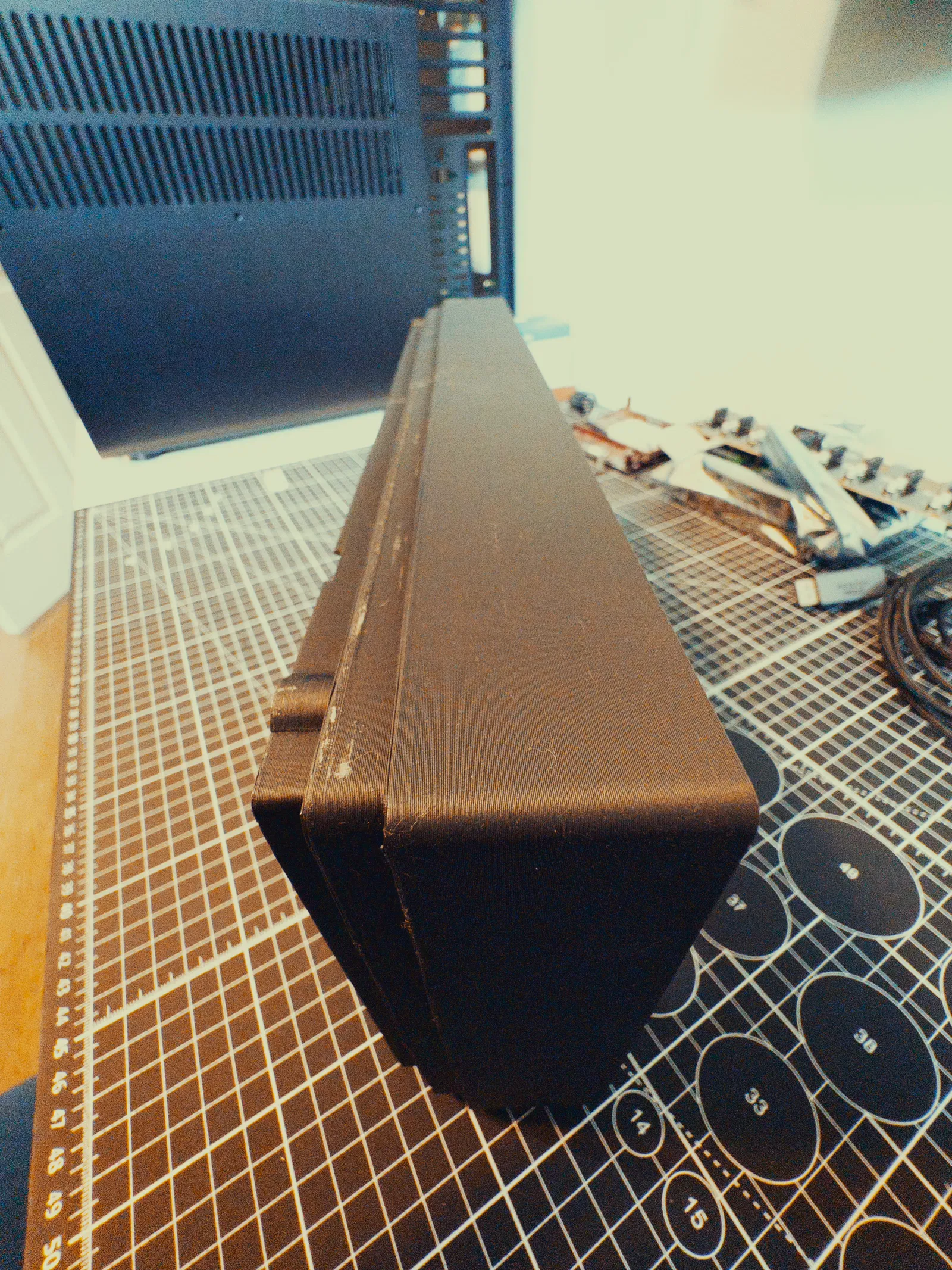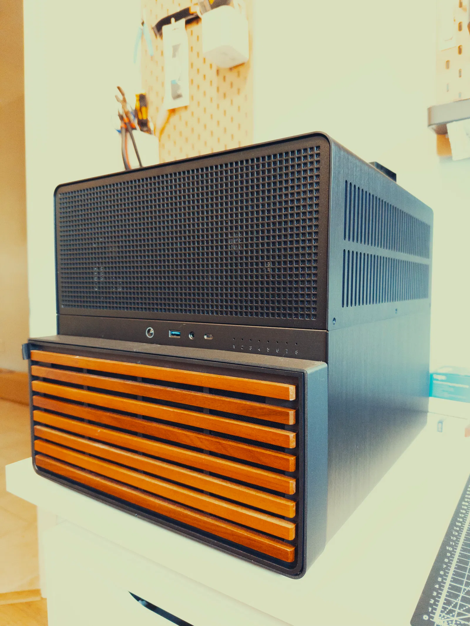 - Lật bộ phận lắp ráp lại và đảm bảo các khe cắm của nắp nguyên bản Jonsbo N5 khớp vào đúng vị trí. Vành đen nên ngang bằng với bộ phận in.
